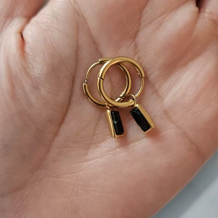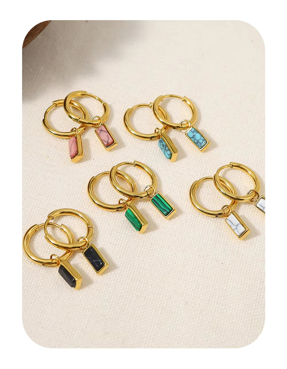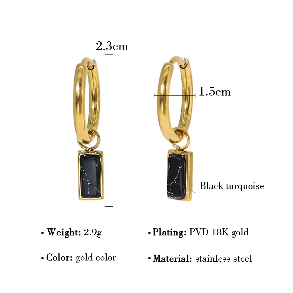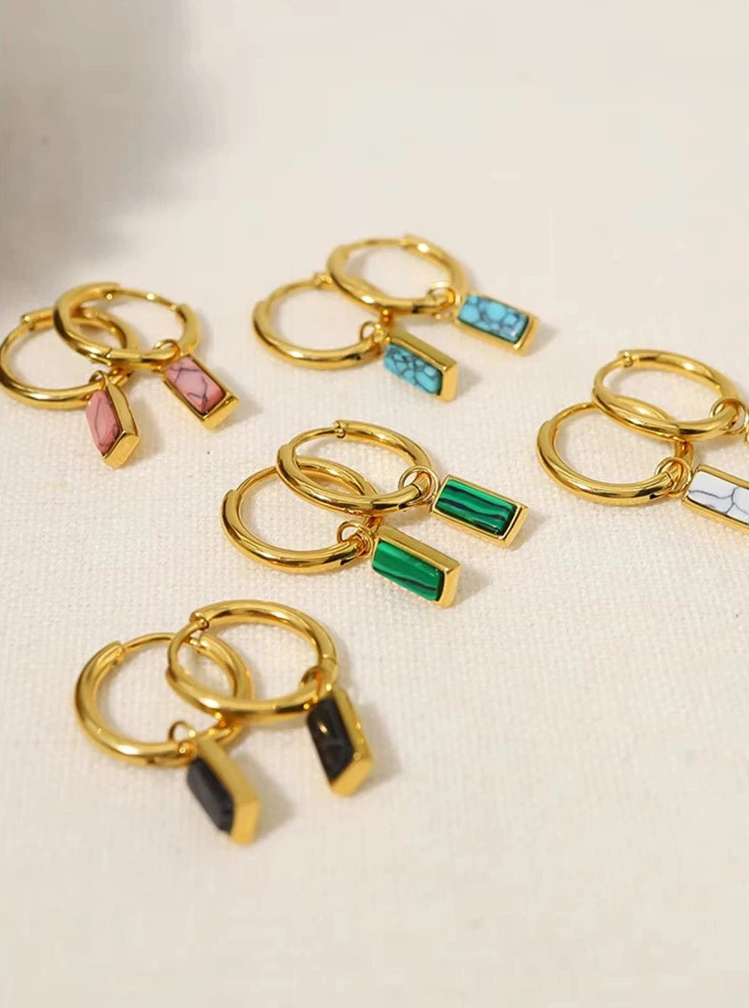 18K Gold Plated Stainless Steel Hoop Huggie Earrings with Colorful Turquoise Stone Charms