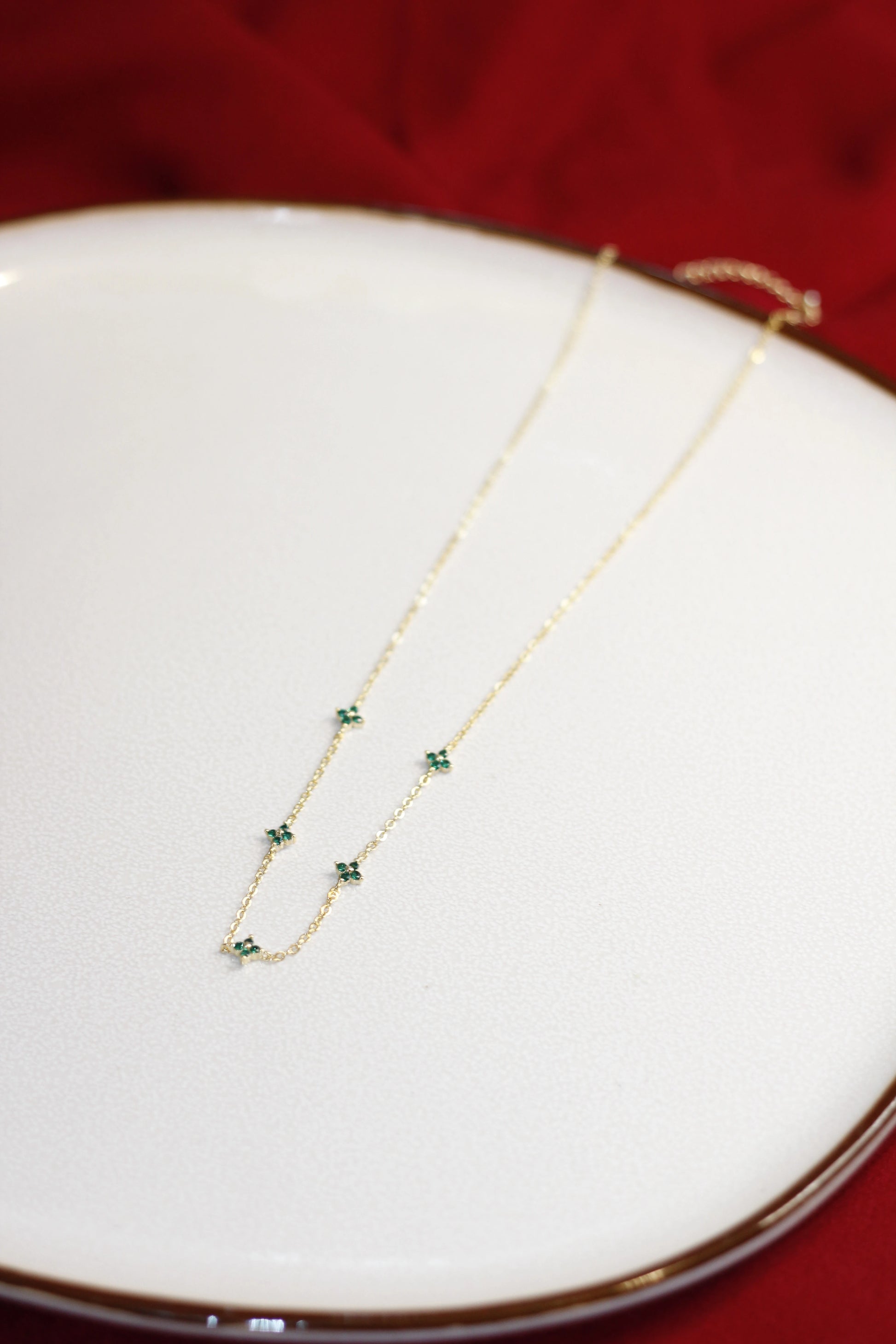 18k Gold-Plated Tiny Green Flower Necklace for Women