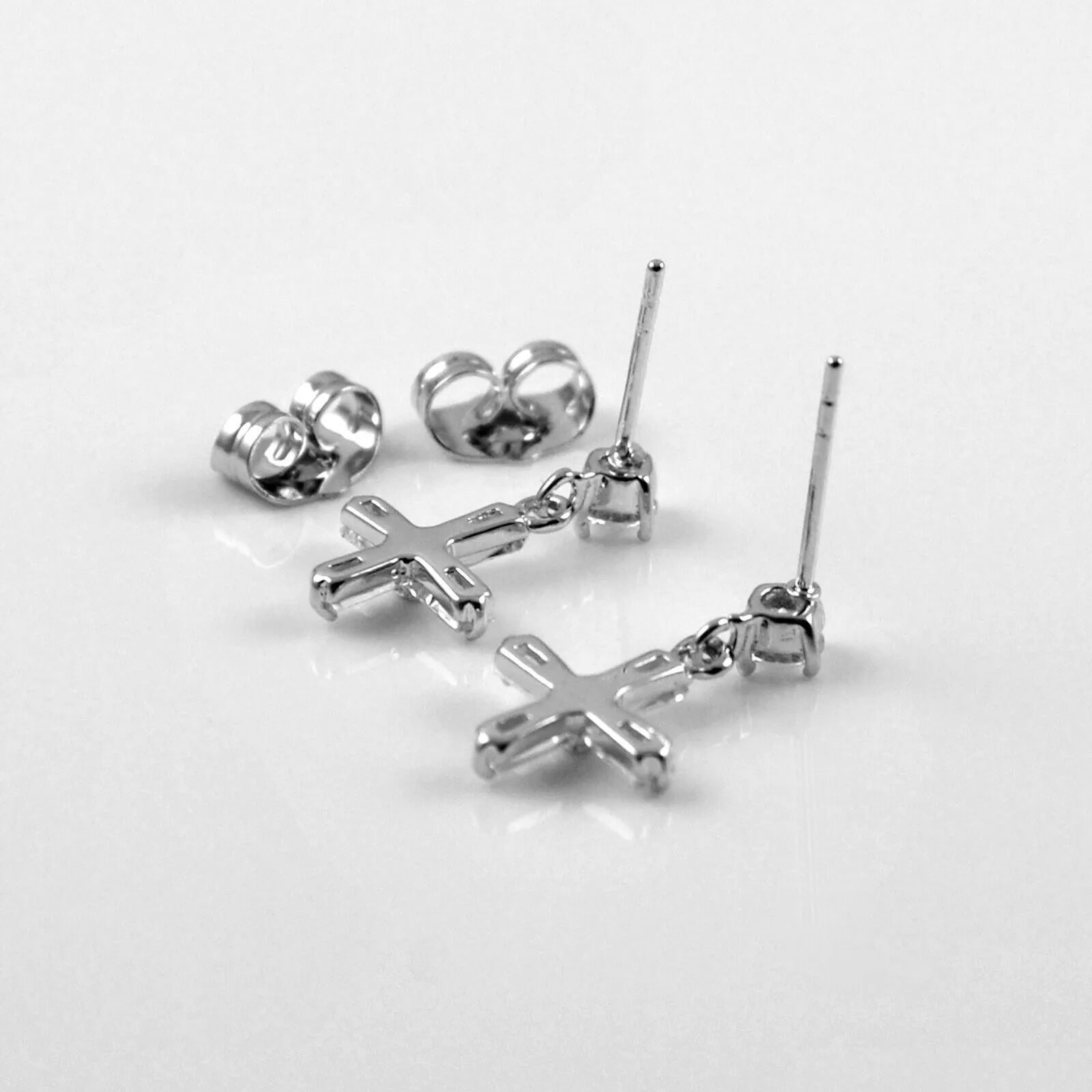 925 CZ Cross Dangle Drop Earrings