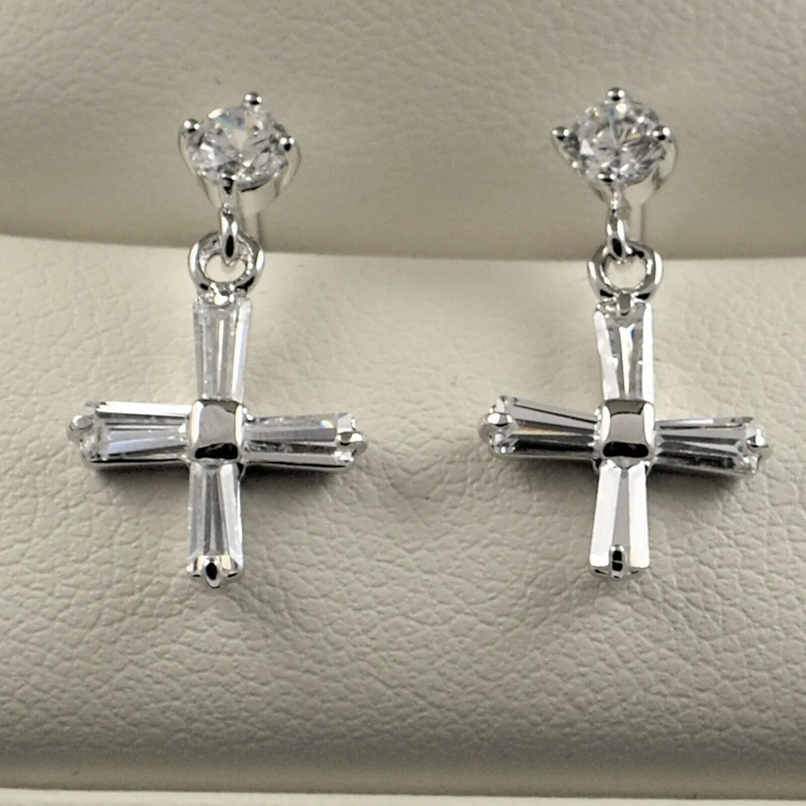 925 CZ Cross Dangle Drop Earrings: