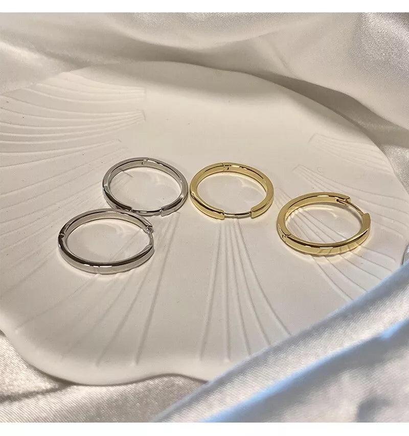 925 Sterling Silver 16mm Hoop Sleeper Earrings | Simple Hinged Hoop Circle Rings