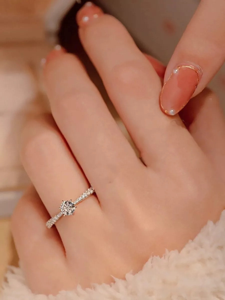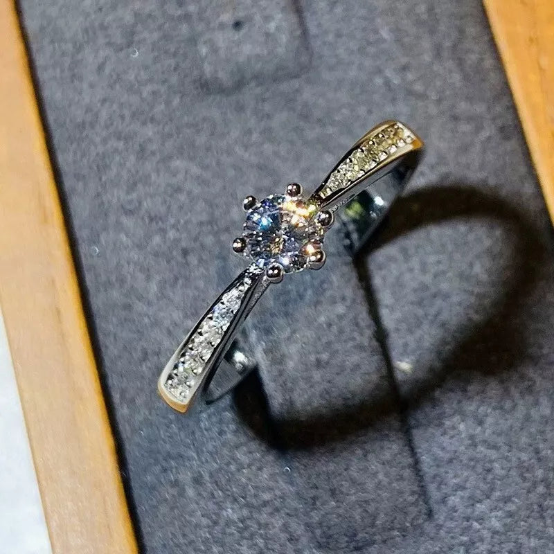 925 Sterling Silver Claw Crystal Shine Adjustable Ring