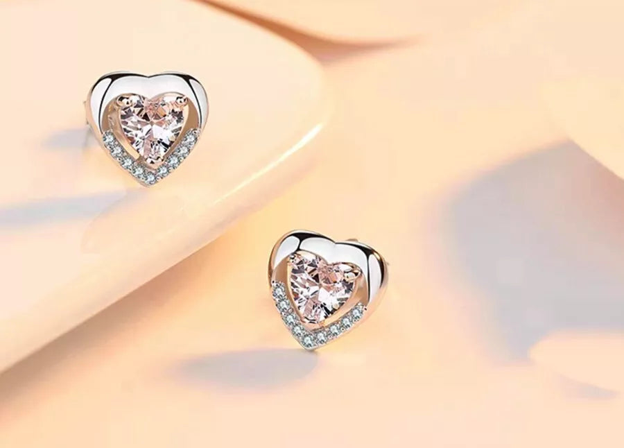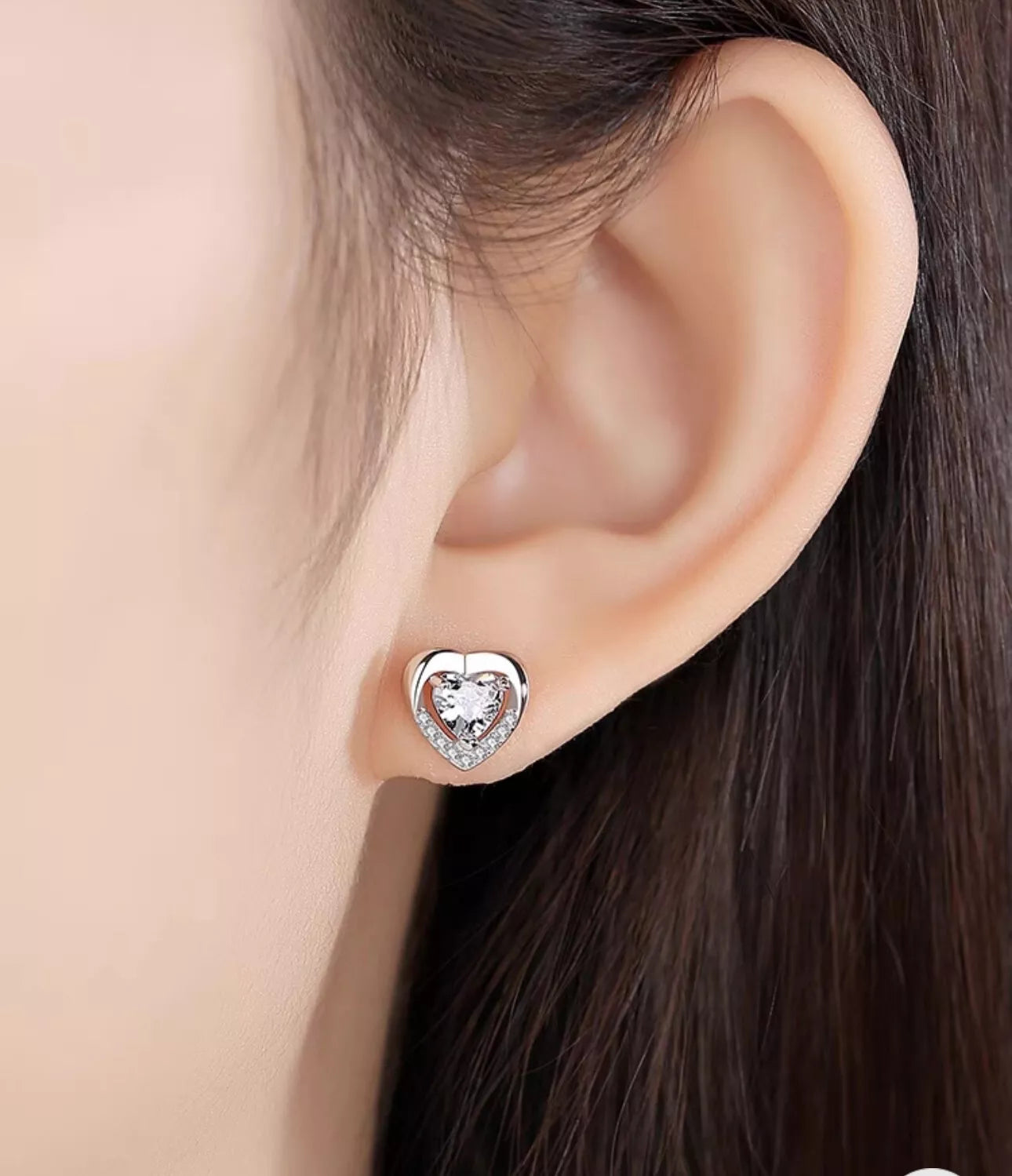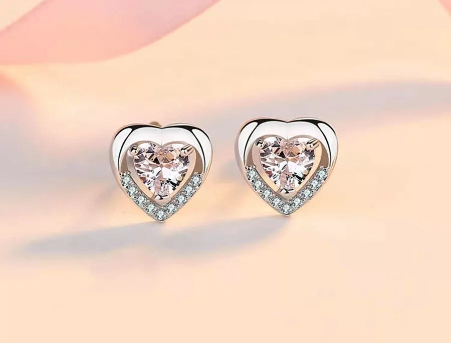 925 Sterling Silver Clear Stone Heart Stud Earrings