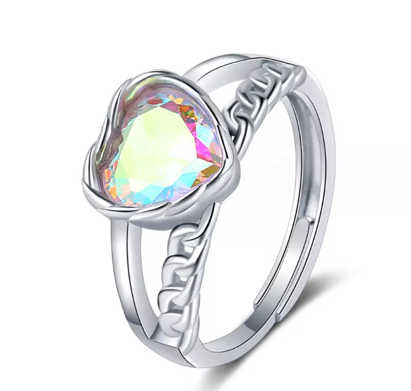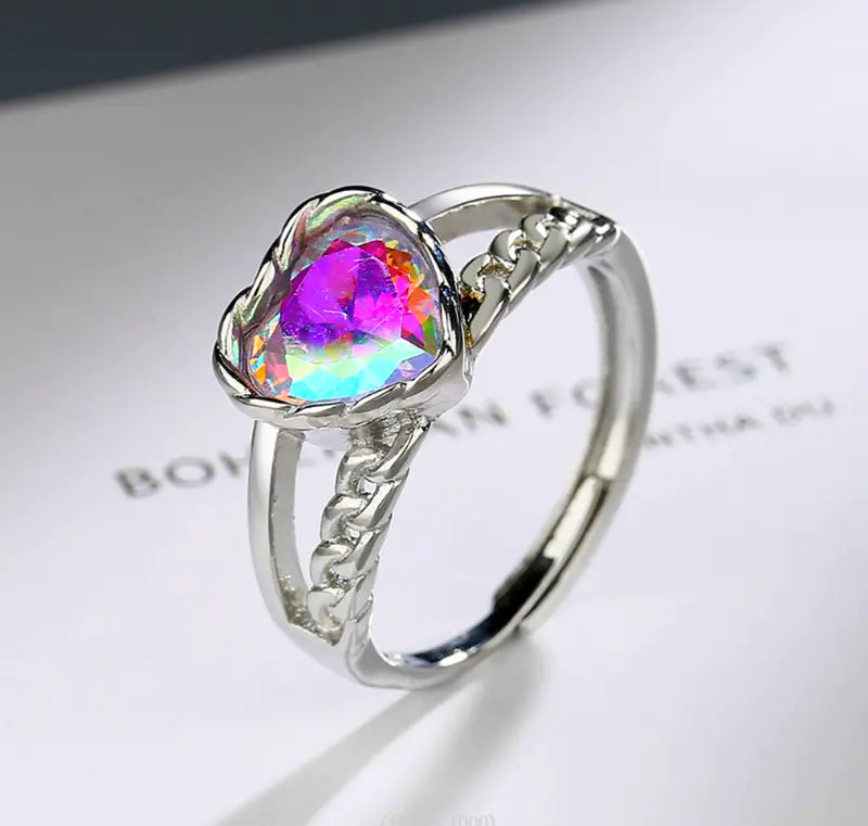 925 Sterling Silver Colorful Heart Adjustable Ring