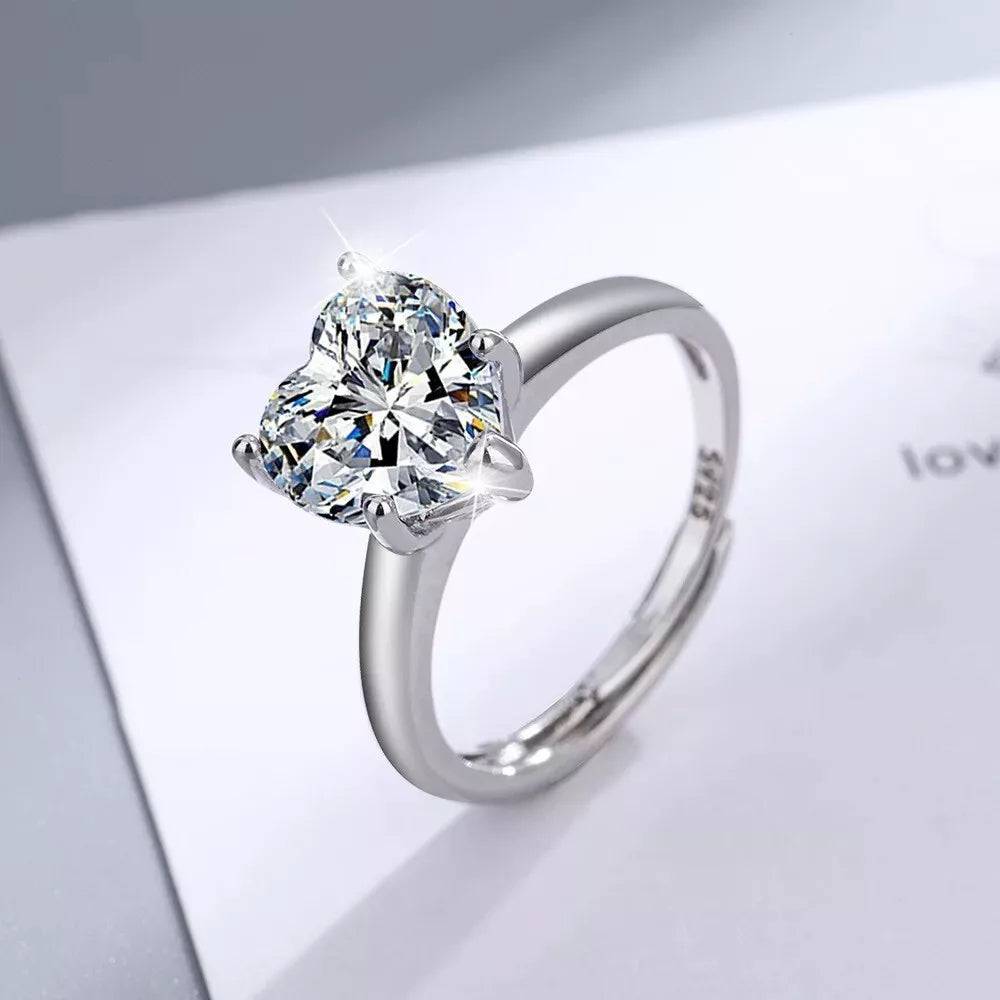 925 Sterling Silver Crystal Heart Adjustable Ring