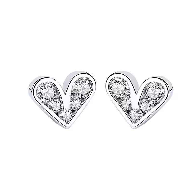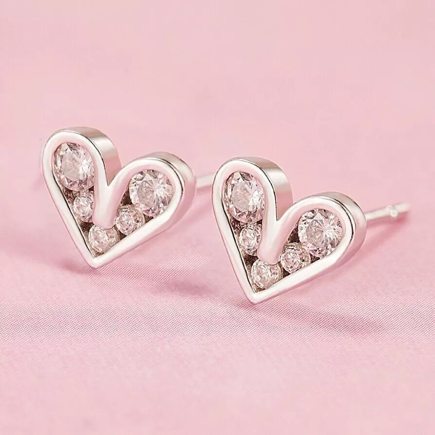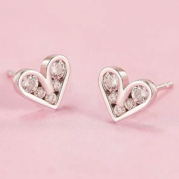 925 Sterling Silver Crystal Heart Stud Earrings 8mm