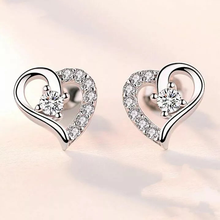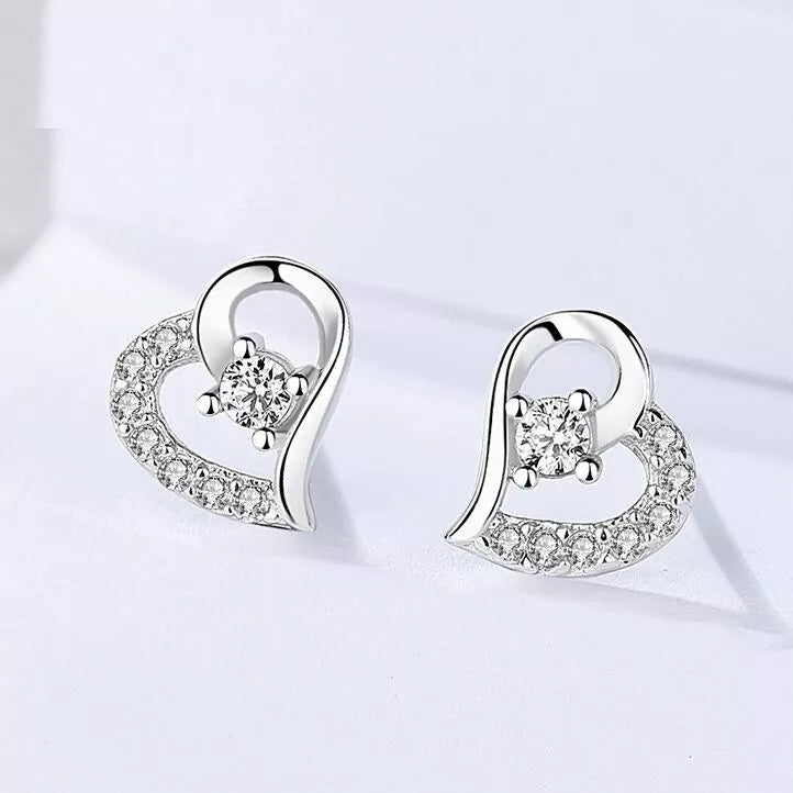 925 Sterling Silver Crystal Heart Stud Earrings for Women & Girls – Gift Jewellery UK