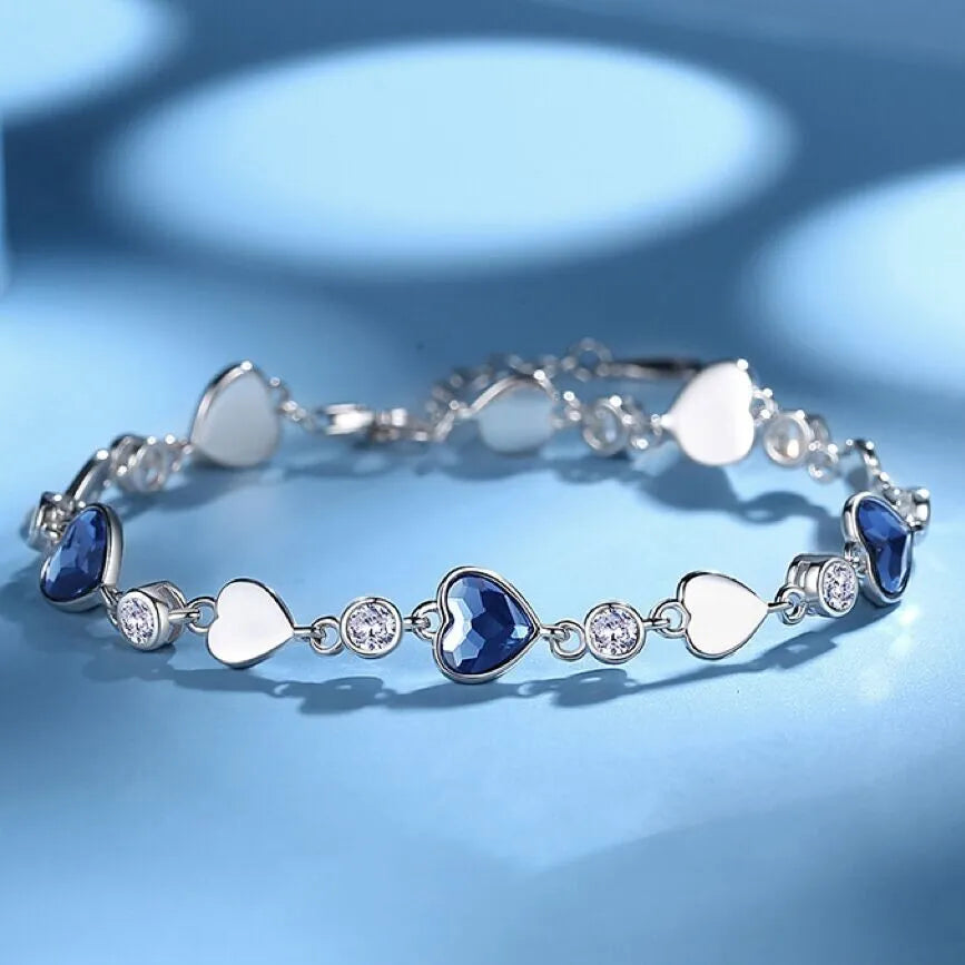 Sterling Silver Crystal Heart Charm Bracelet (925 Hallmarked).