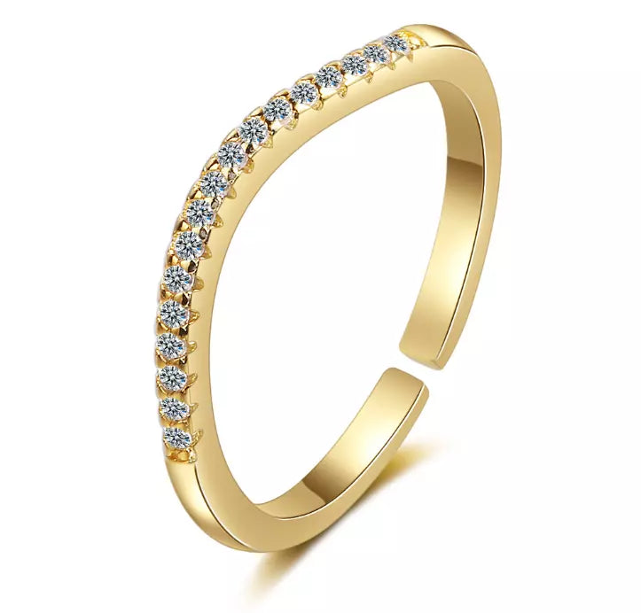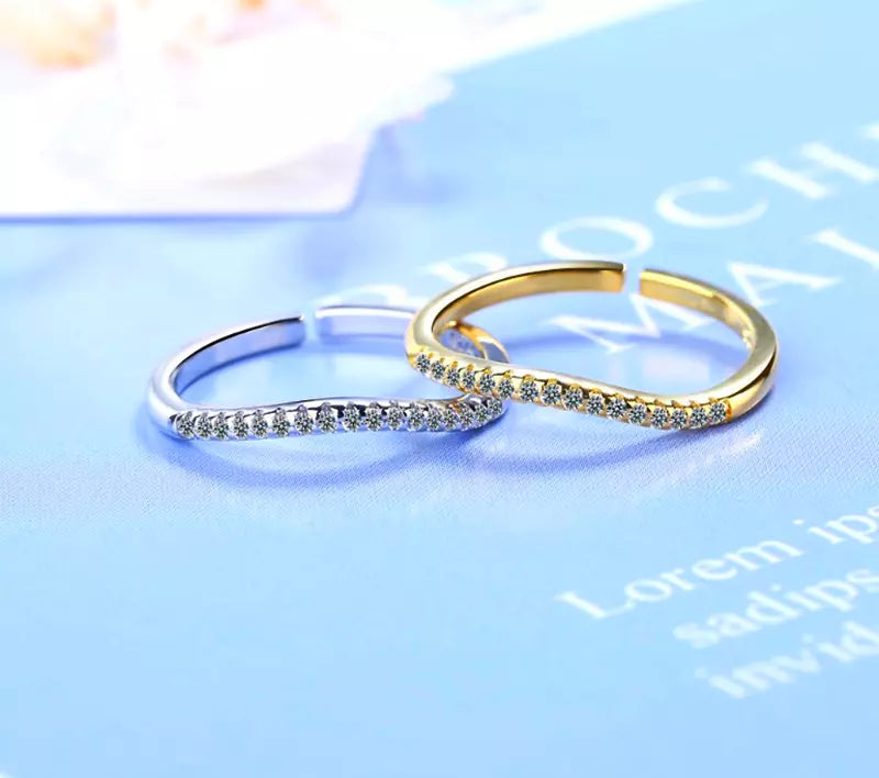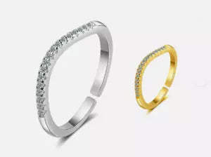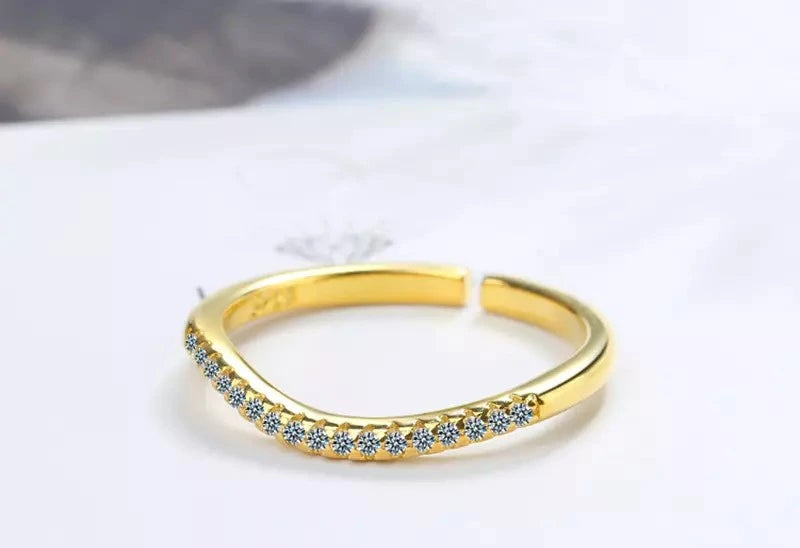 925 Sterling Silver Crystal Stone Adjustable Gold Ring