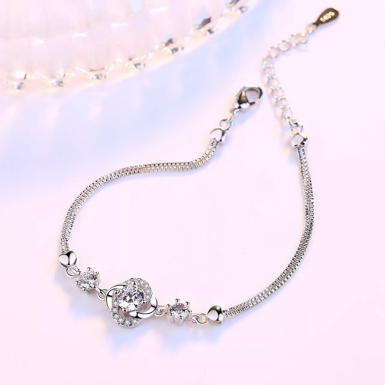 925 Sterling Silver Crystal Swirl Charm Bracelet – Hallmarked Jewellery for Women & Girls UK