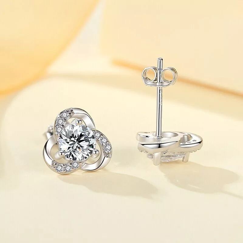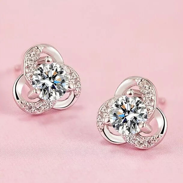 925 Sterling Silver Crystal Swirl Stud Earrings