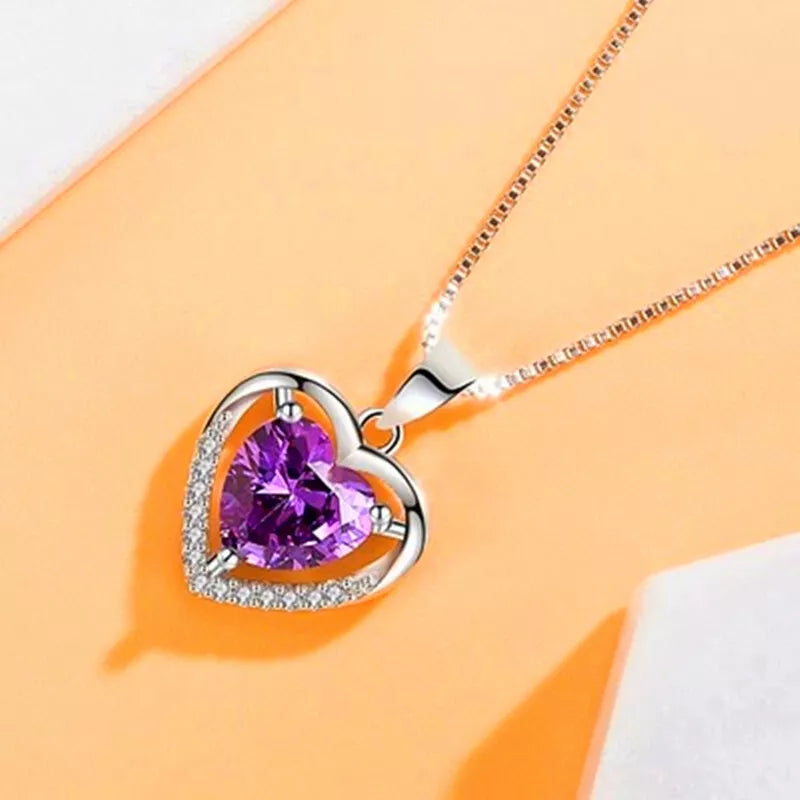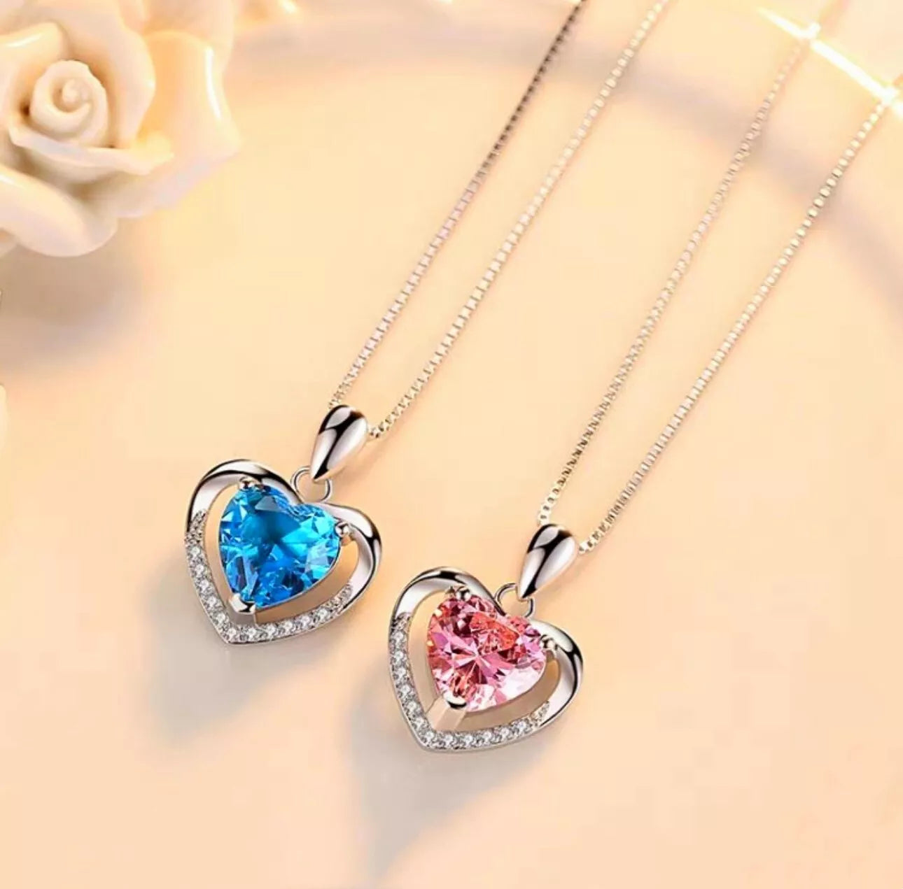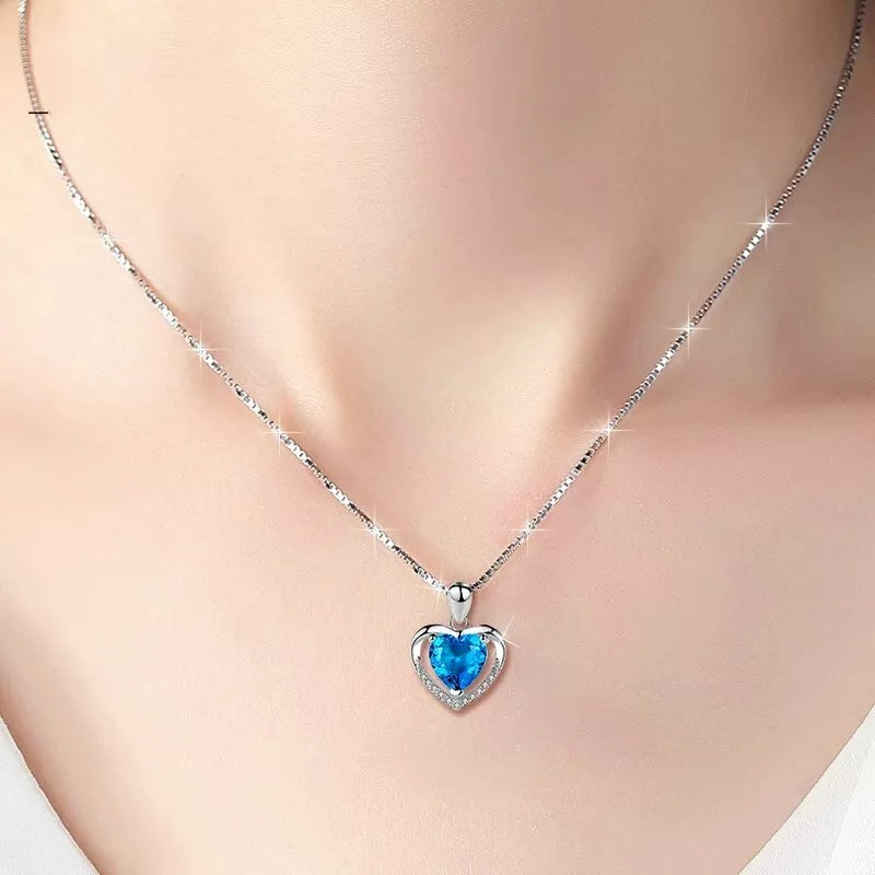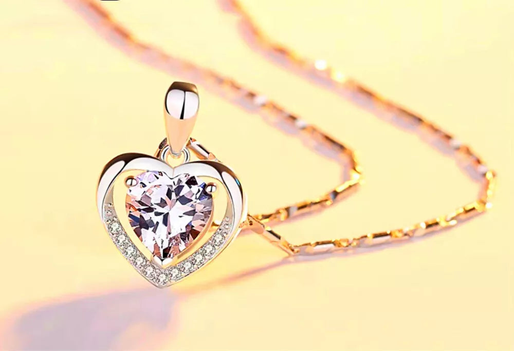 925 Sterling Silver Heart Crystal Pendant Necklace for Women – Elegant Chain Jewelry Gift