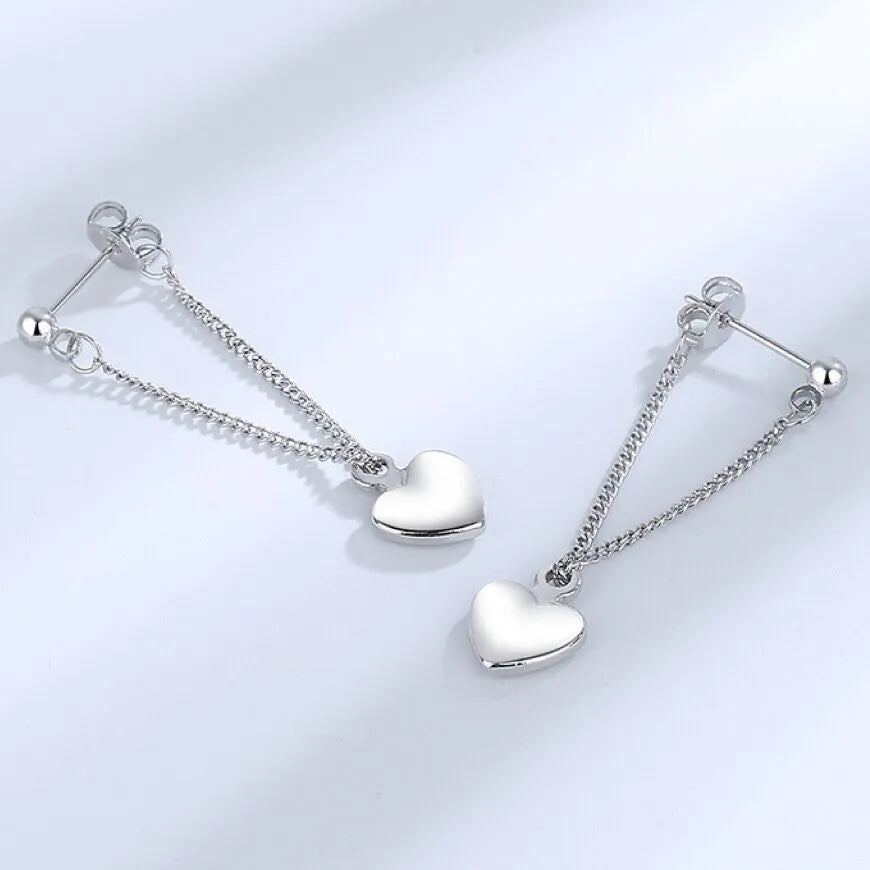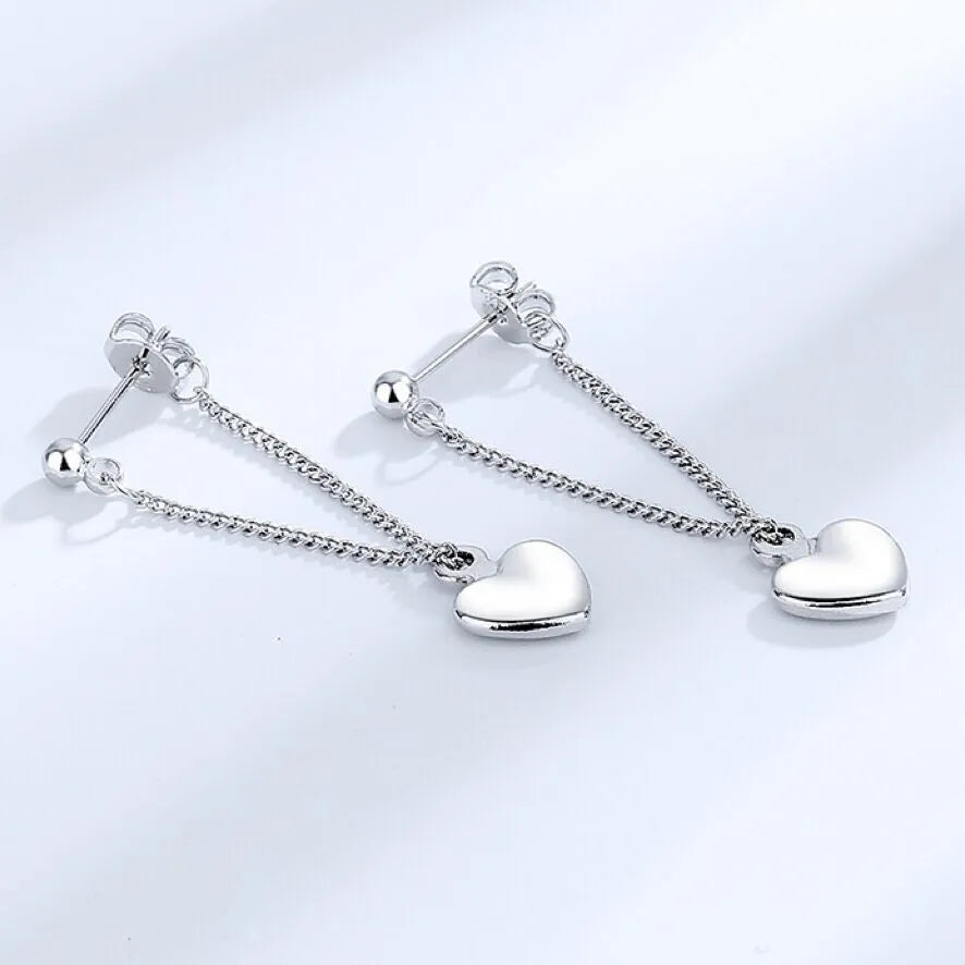 925 Sterling Silver Heart Dangle Drop Stud Earrings