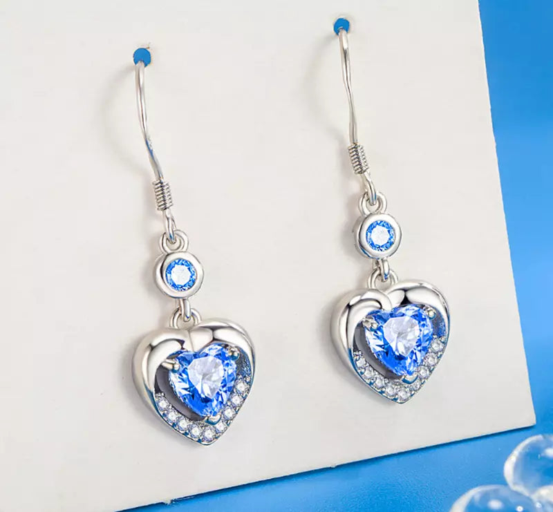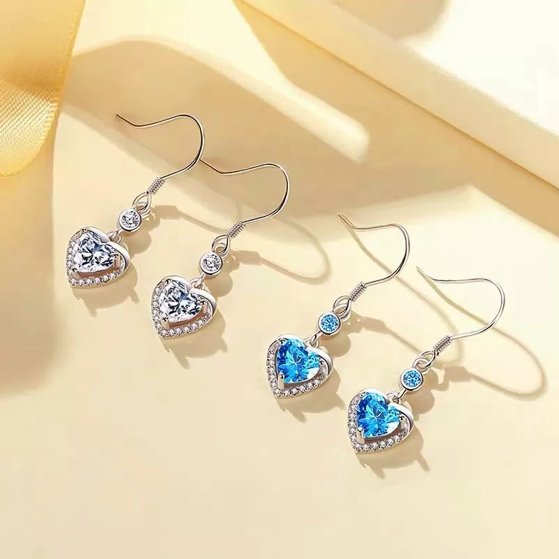 925 Sterling Silver Heart Drop Earrings – Dangle Hook Women’s Jewellery Gift UK, Romantic Designer Style