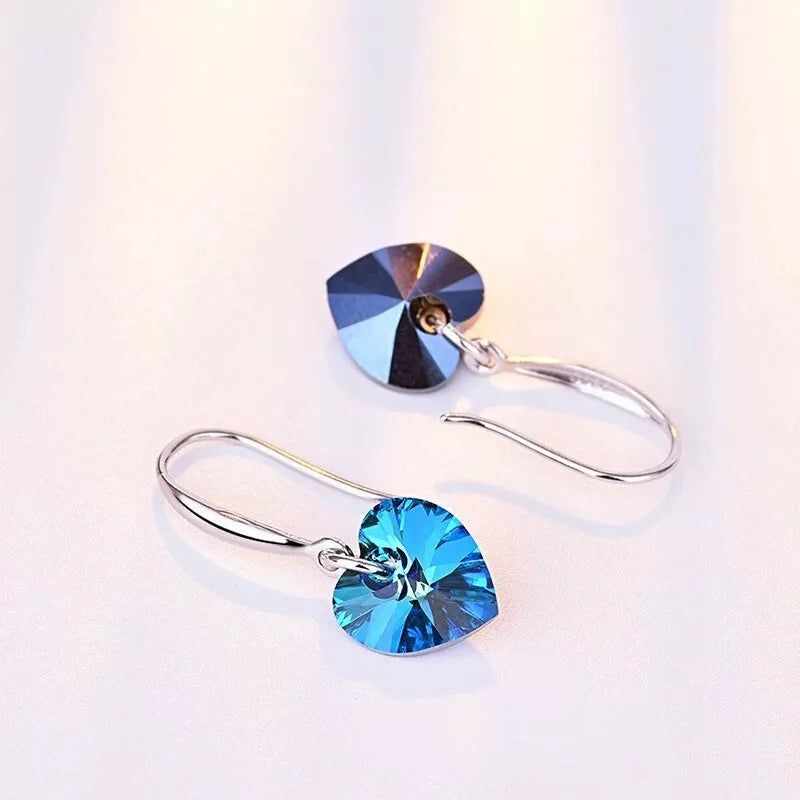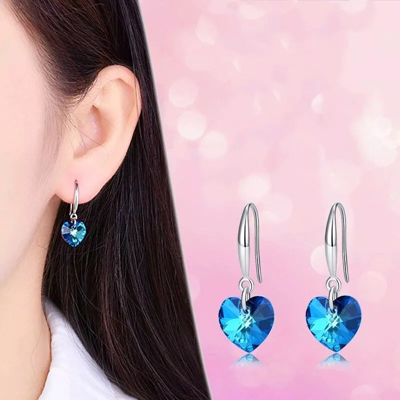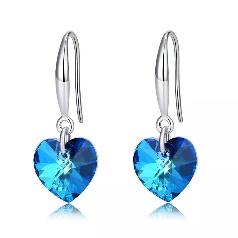 925 Sterling Silver Heart Ocean Blue Drop Earrings for Women – Elegant Hook Stud Jewelry Gift UK