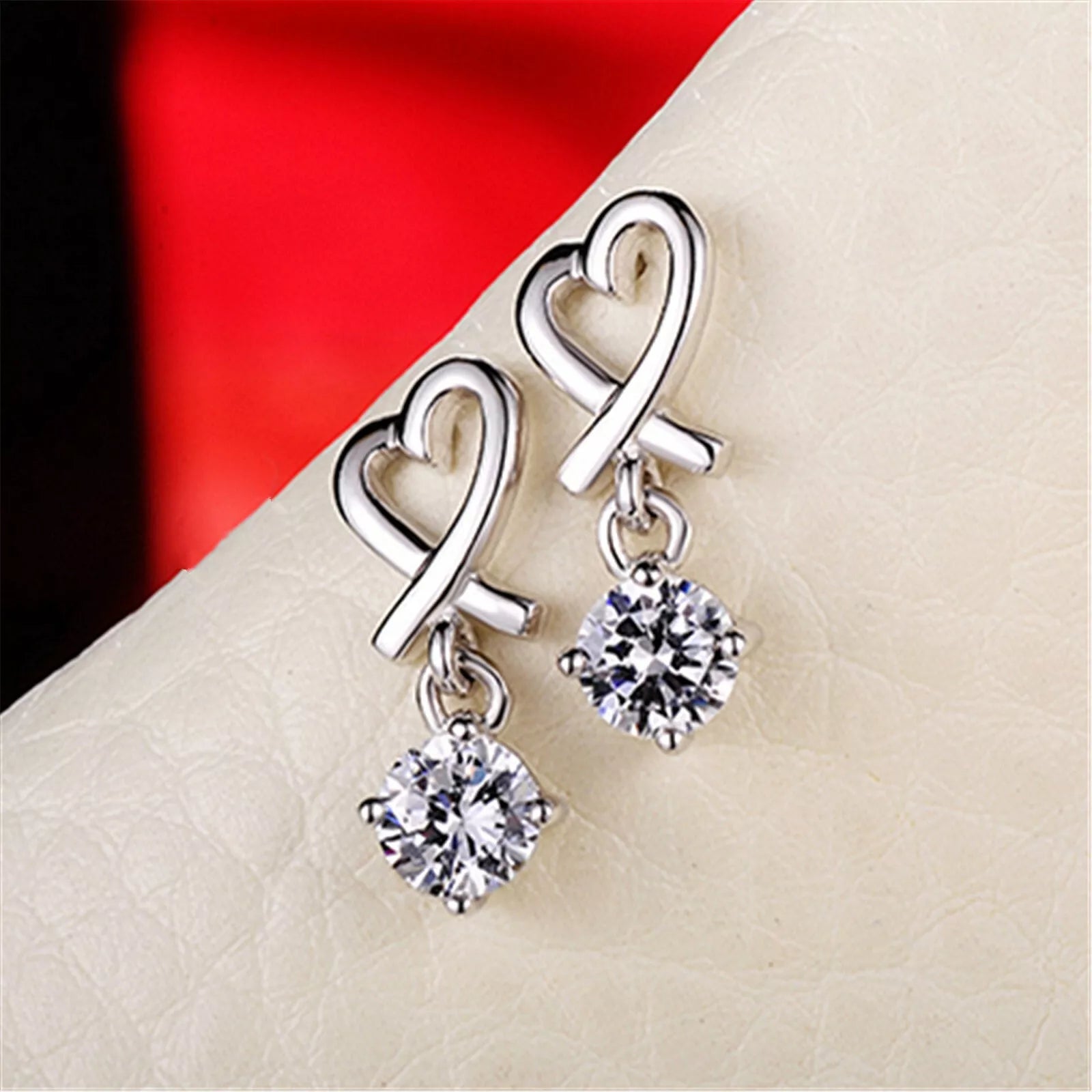 925 Sterling Silver Heart Ribbon Drop Earrings – CZ Dangle Studs S925 Women’s Gift Jewelry UK