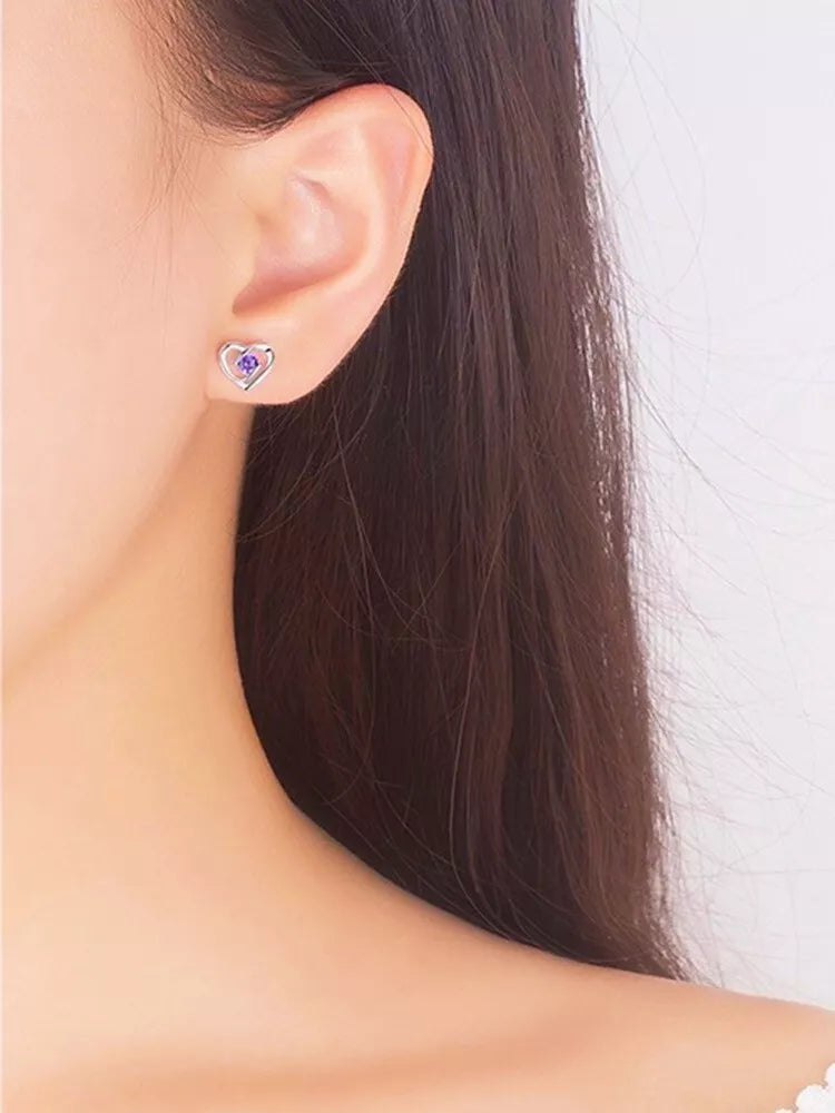 925 Sterling Silver Heart Swirl Stone Stud Earrings