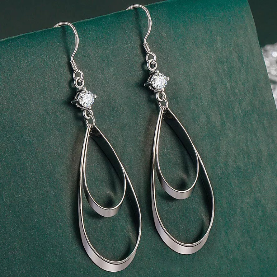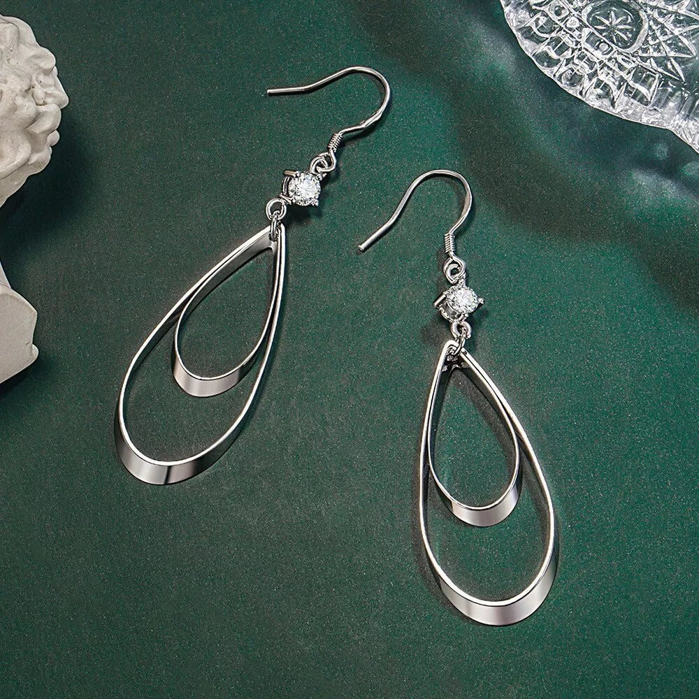 925 Sterling Silver Hollow Water Drop Shaped Hook Earrings