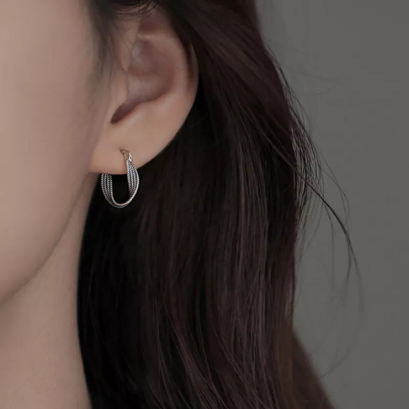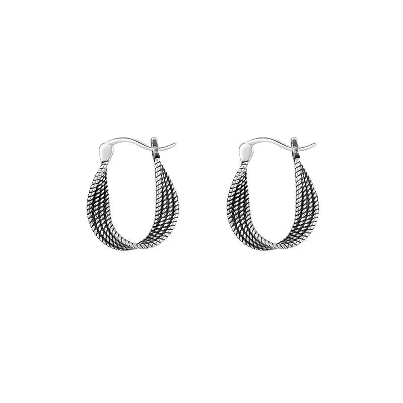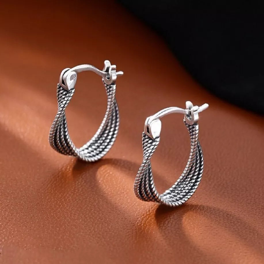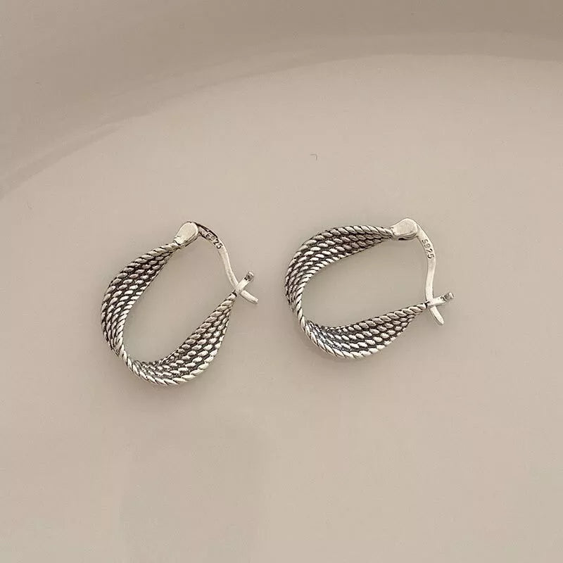 925 Sterling Silver Twisted Fashion Hoop Earrings