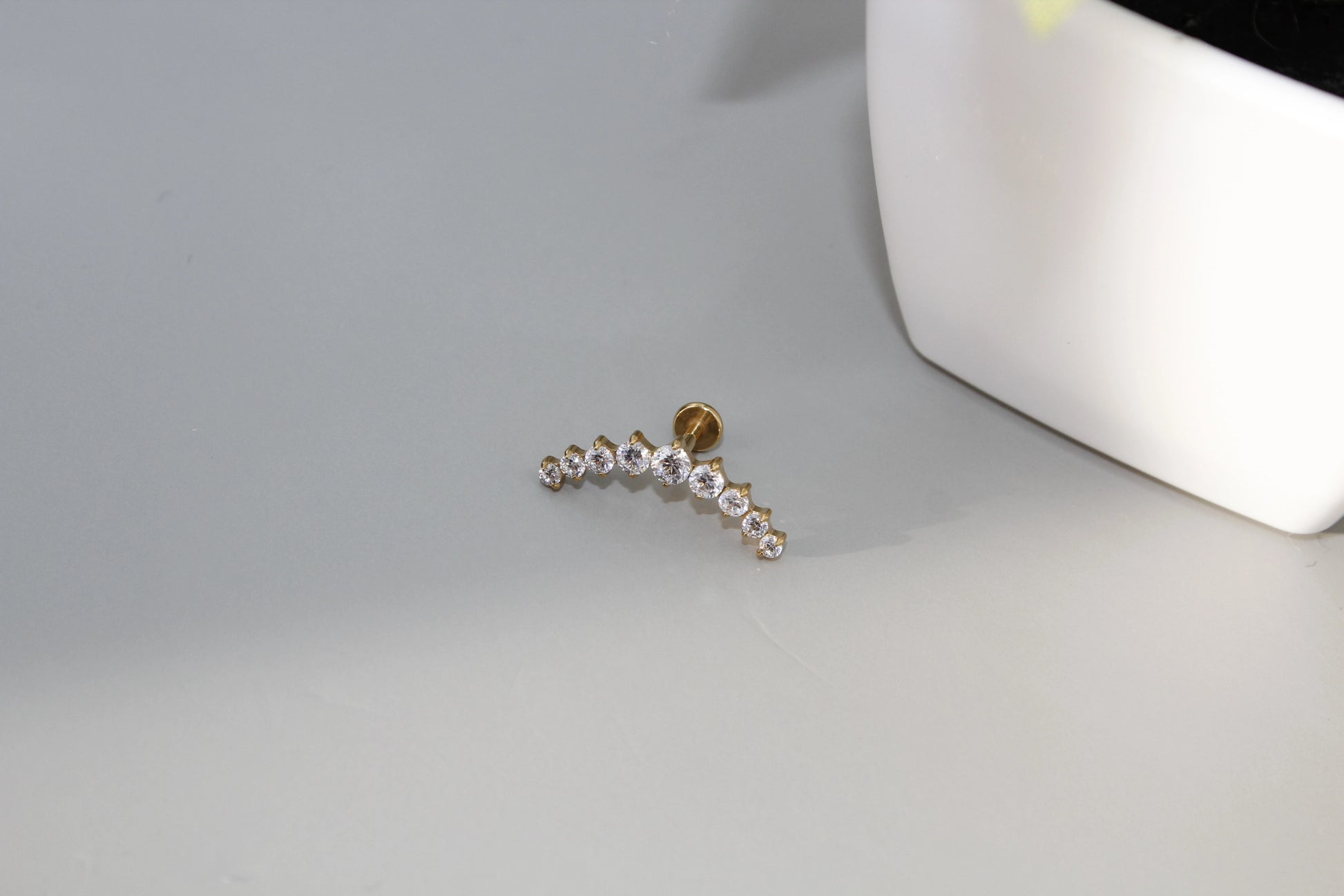 Discover the elegance and durability of our 1PC Titanium Zircon Labret Piercings Lip Rings. Perfectly designed for women, this stunning gold color CZ cartilage helix lobe conch earring stud is crafted from high-quality titanium, ensuring no harm to the human body. With a size of 16G (1.2x6mm), this versatile piece of jewelry is ideal for various piercings including lip, helix, and cartilage.