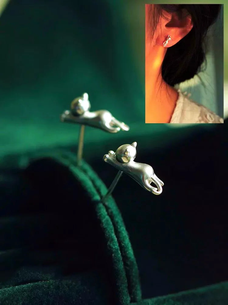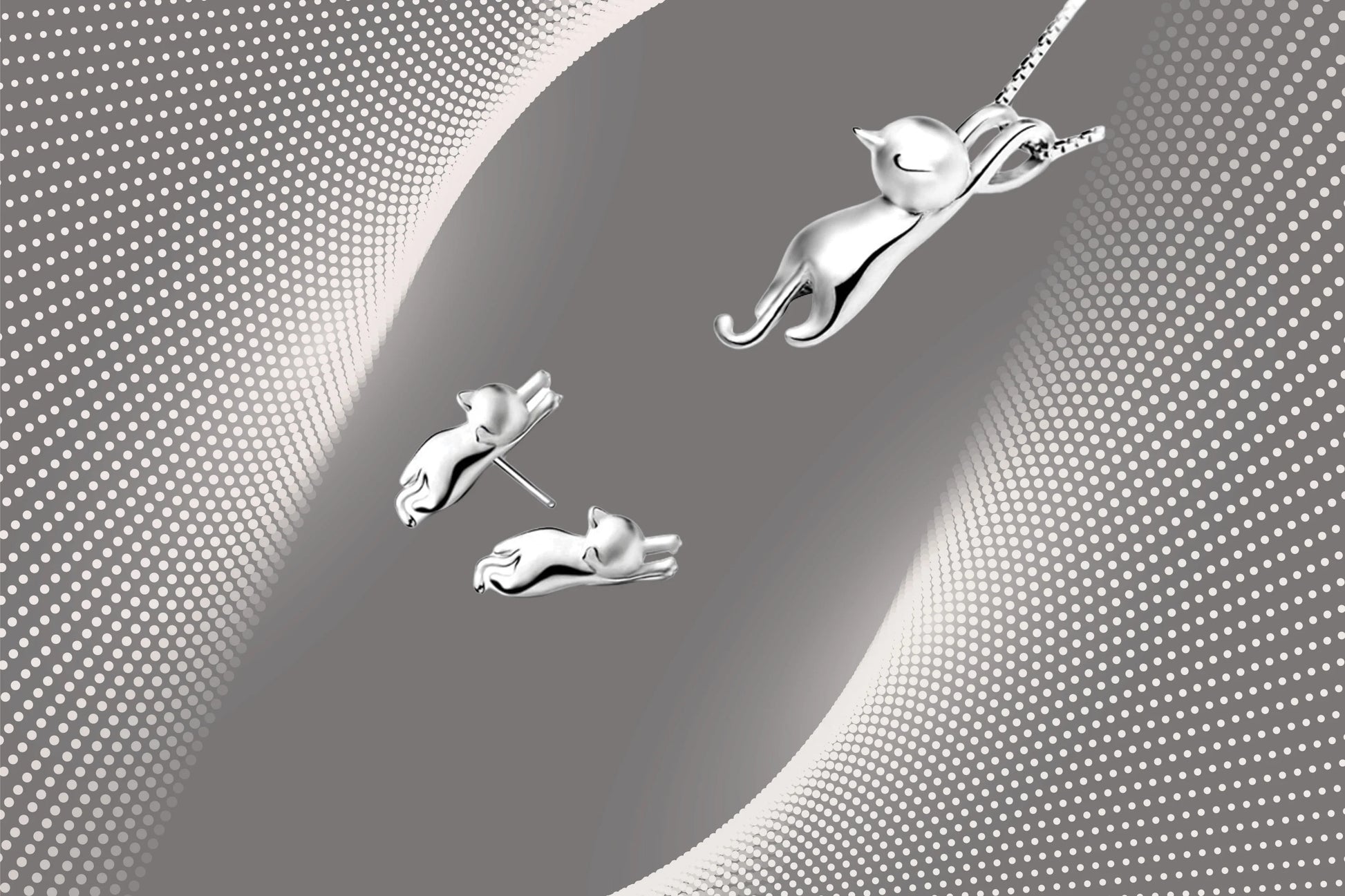 Embrace Feline Elegance with Our Tiny Kitty Cat Pendant and Earrings Set!