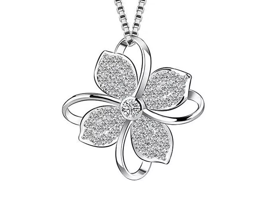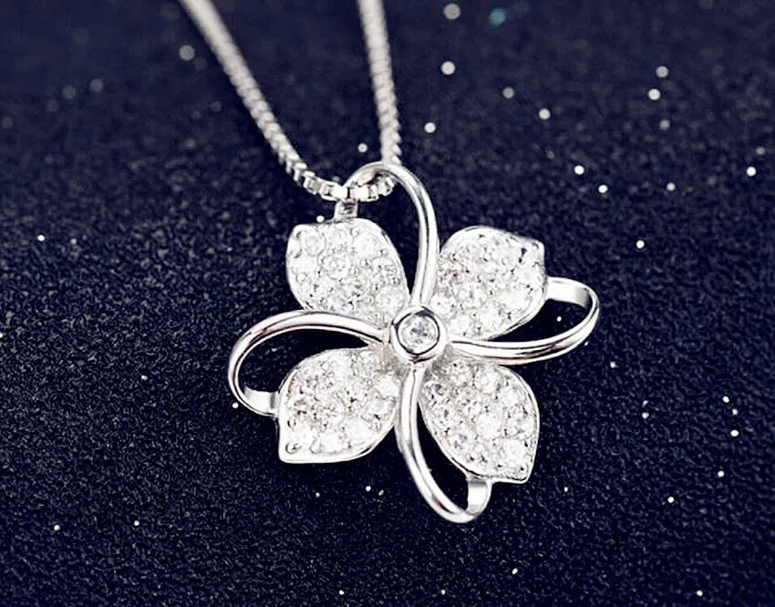 Clover Crystal Pendant Necklace 925 Sterling Silver, Elegant Jewelry Gift for Women