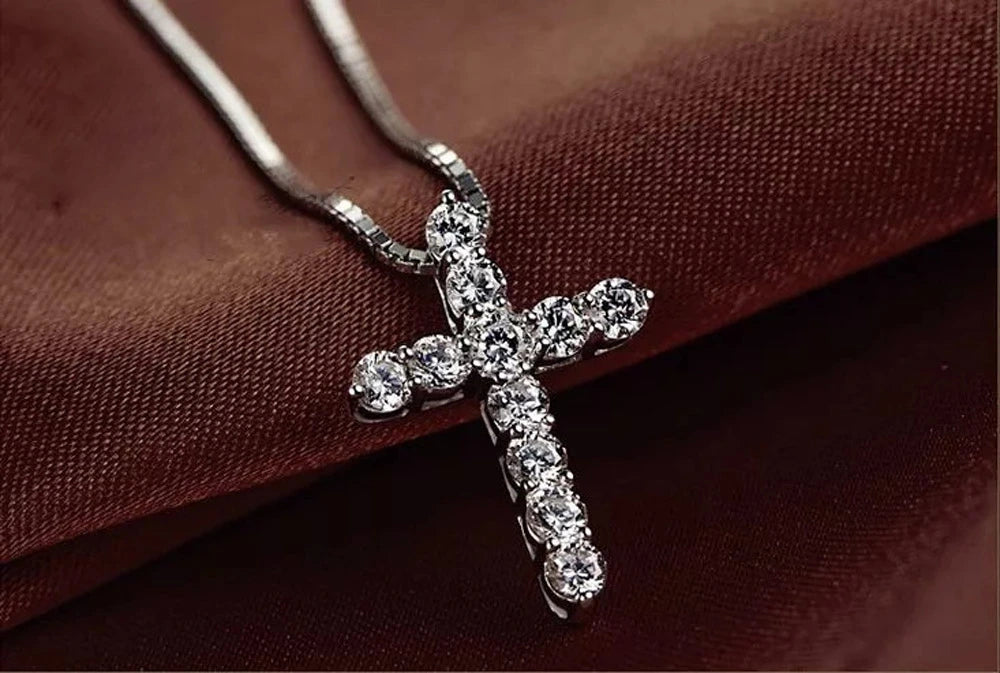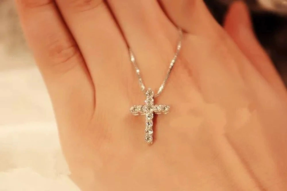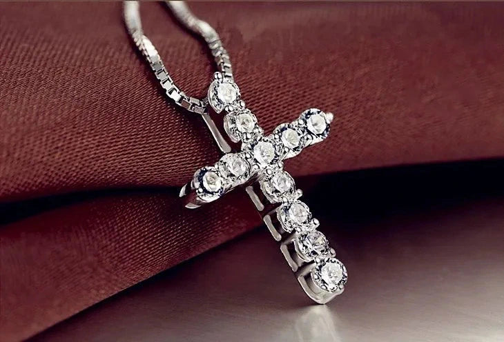 Embrace divine elegance with our Crystal Cross Pendant Necklace. Expertly crafted with stunning 925 sterling silver chains and adorned with AAA perfect cut CZ stones, this piece seamlessly blends spirituality and style. Each pendant, measuring 24*18 mm, showcases the latest designs to elevate your jewellery collection. Packaged beautifully, it makes for a perfect gift, radiating grace and sophistication.
