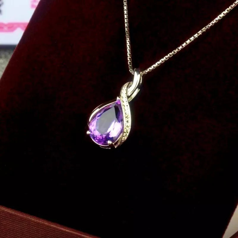 - Exquisite Pendant: A natural amethyst crystal set in high-quality silver, pendant size: 1.4 x 2.5 cm.