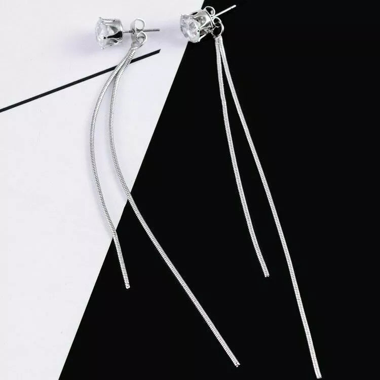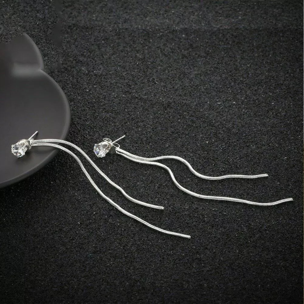 Elegant Crystal Tassel Drop Earrings – 925 Sterling Silver Filled, Fashion Jewelry for Women