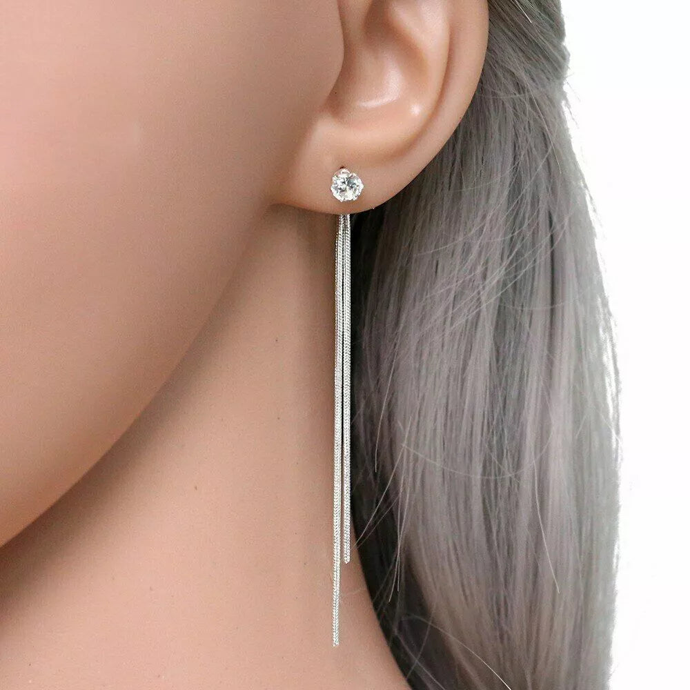 Add a touch of elegance and sparkle to your look with our Cute Dangle Hanging Crystal Tassel Long Drop Earrings. Crafted with 925 Sterling Silver filled material, these earrings feature a stylish geometric design adorned with zinc alloy rhinestones. Perfect for daily wear, weddings, dates, proms, and any occasion where you want to stand out and receive compliments.