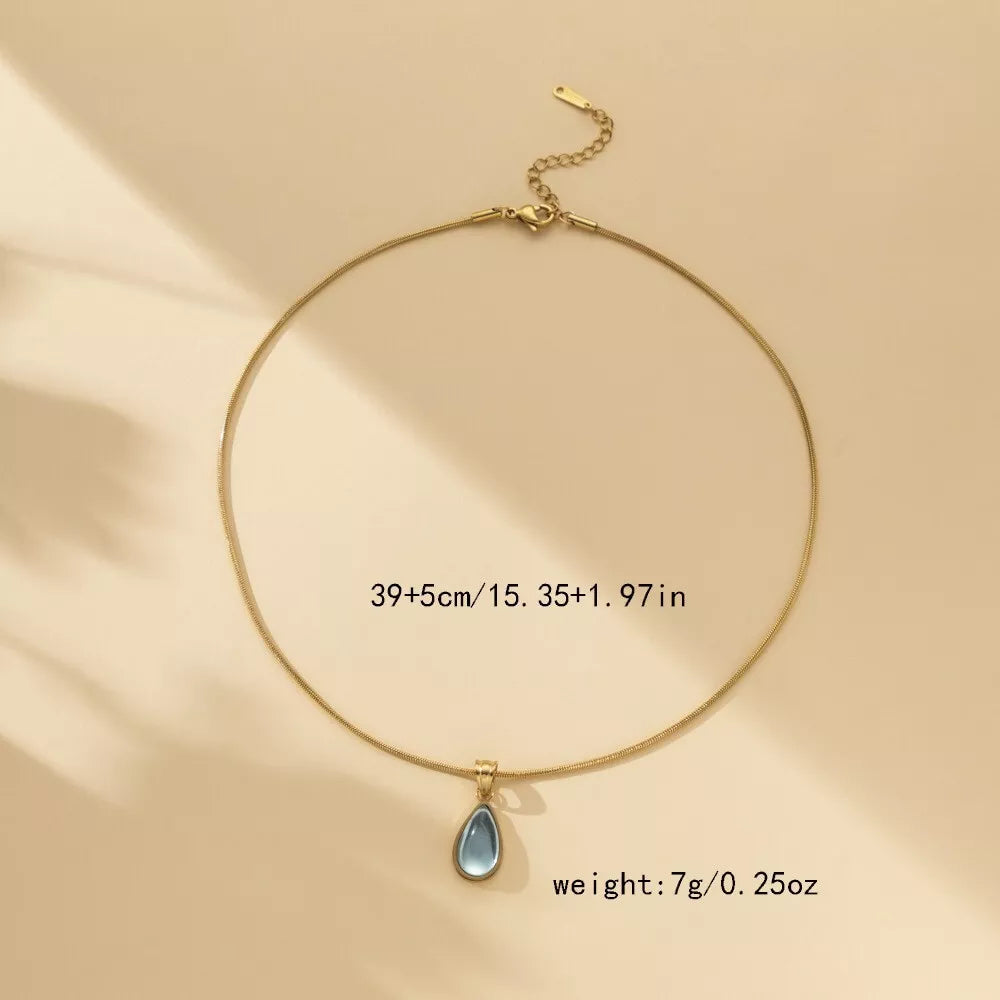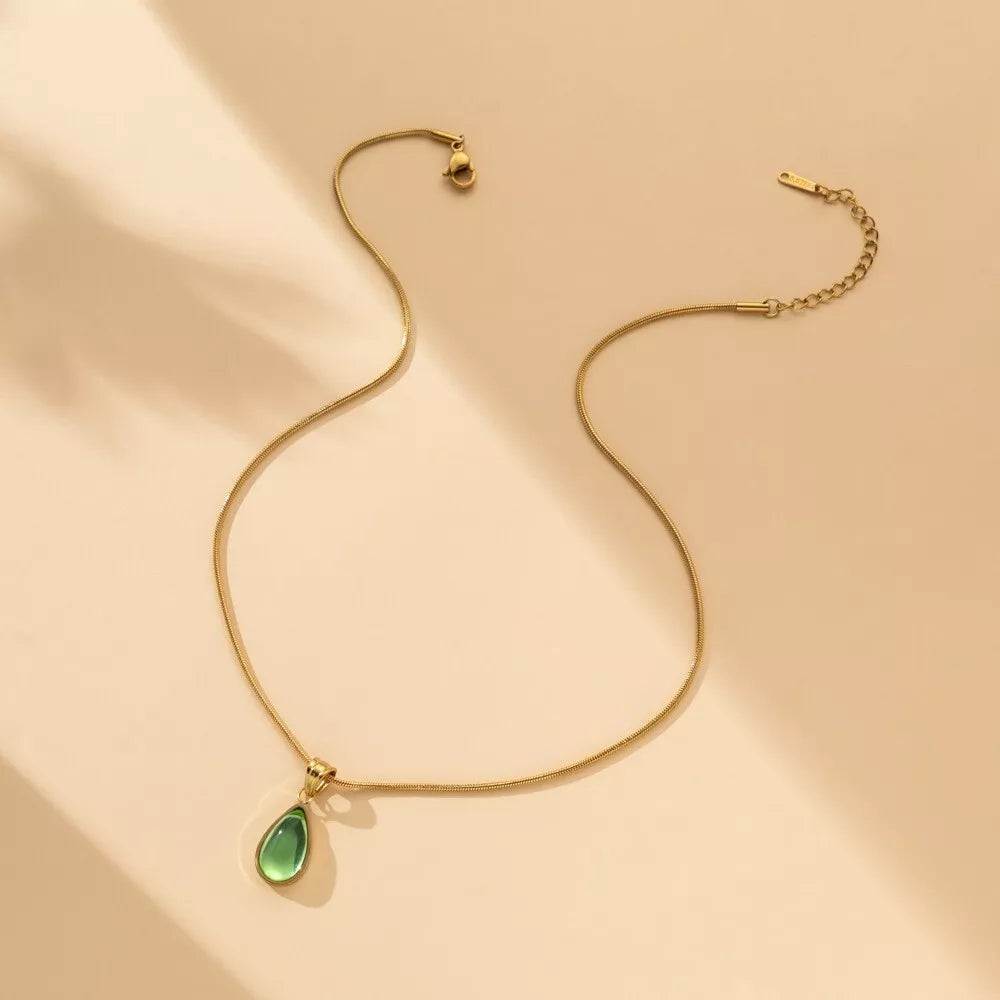 Elegant Green and Blue Teardrop Pendant Necklace | Simple & Stylish Titanium Steel Jewelry Gift