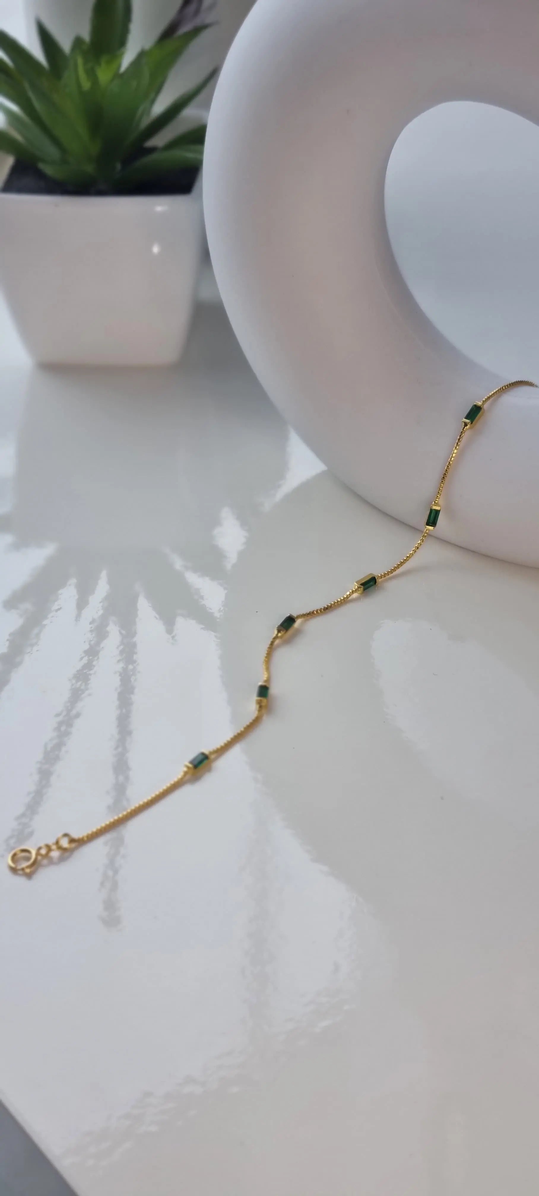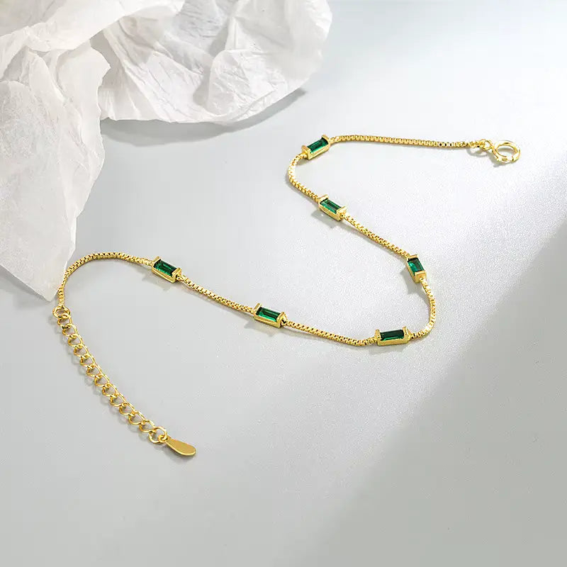 Enhance your elegance with our Elegant 925 Sterling Silver gold plated Green Zircon Charm Bracelet. This exquisite bracelet is crafted from high-quality 925 sterling silver and features a stunning green zircon charm, making it a perfect accessory for any occasion. Whether you're looking for a thoughtful gift or a sophisticated addition to your jewellery collection, this bracelet is designed to impress.