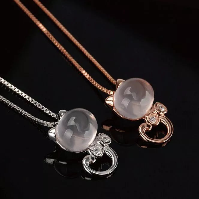 Enhance your elegance with our Elegant Moonstone Cat Pendant Necklace, crafted from 925 sterling silver. This high-quality designer necklace features a charming cat pendant adorned with a mystical moonstone, perfect for birthdays, Valentine's Day, Mother's Day, and various special occasions.