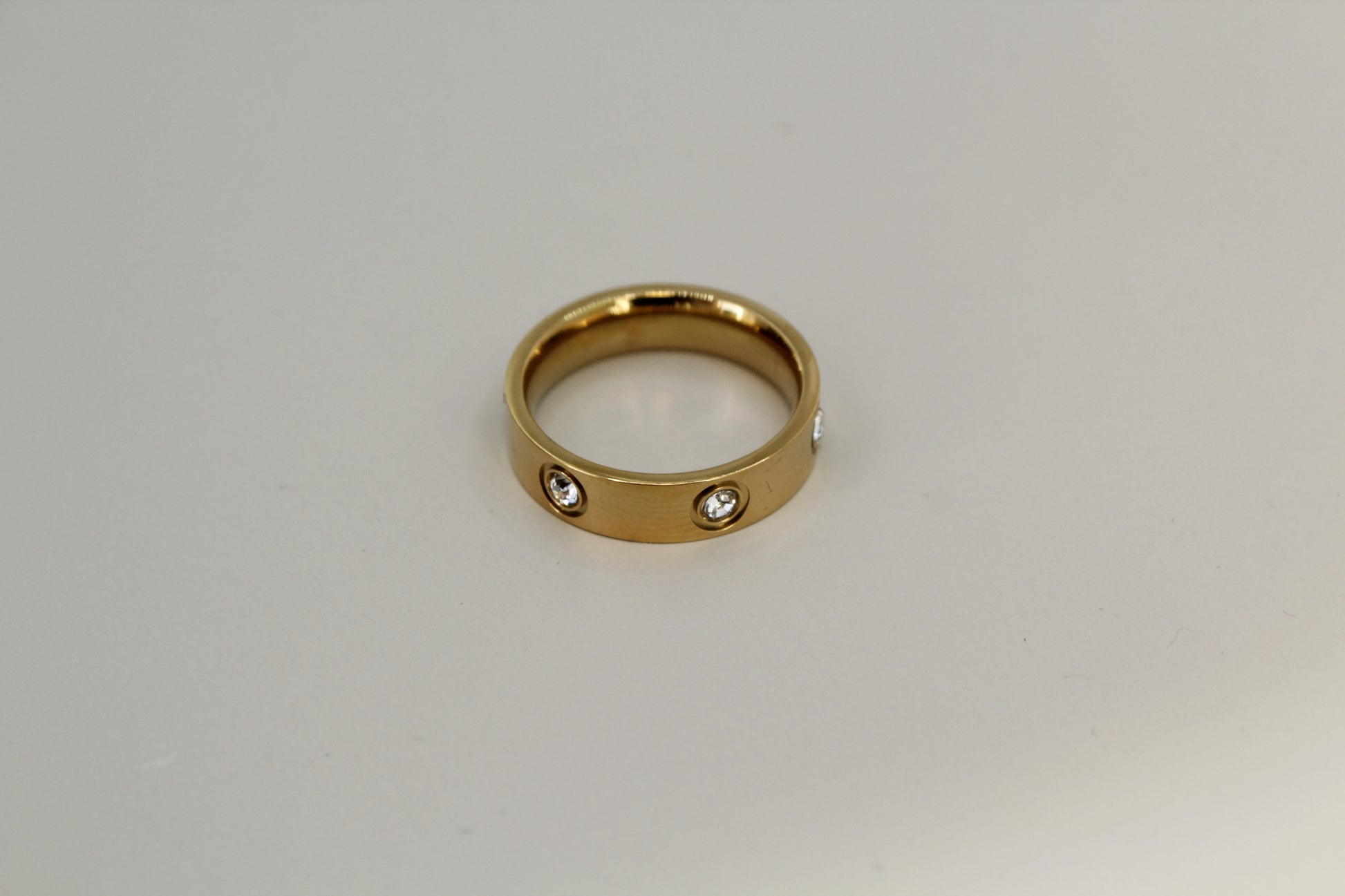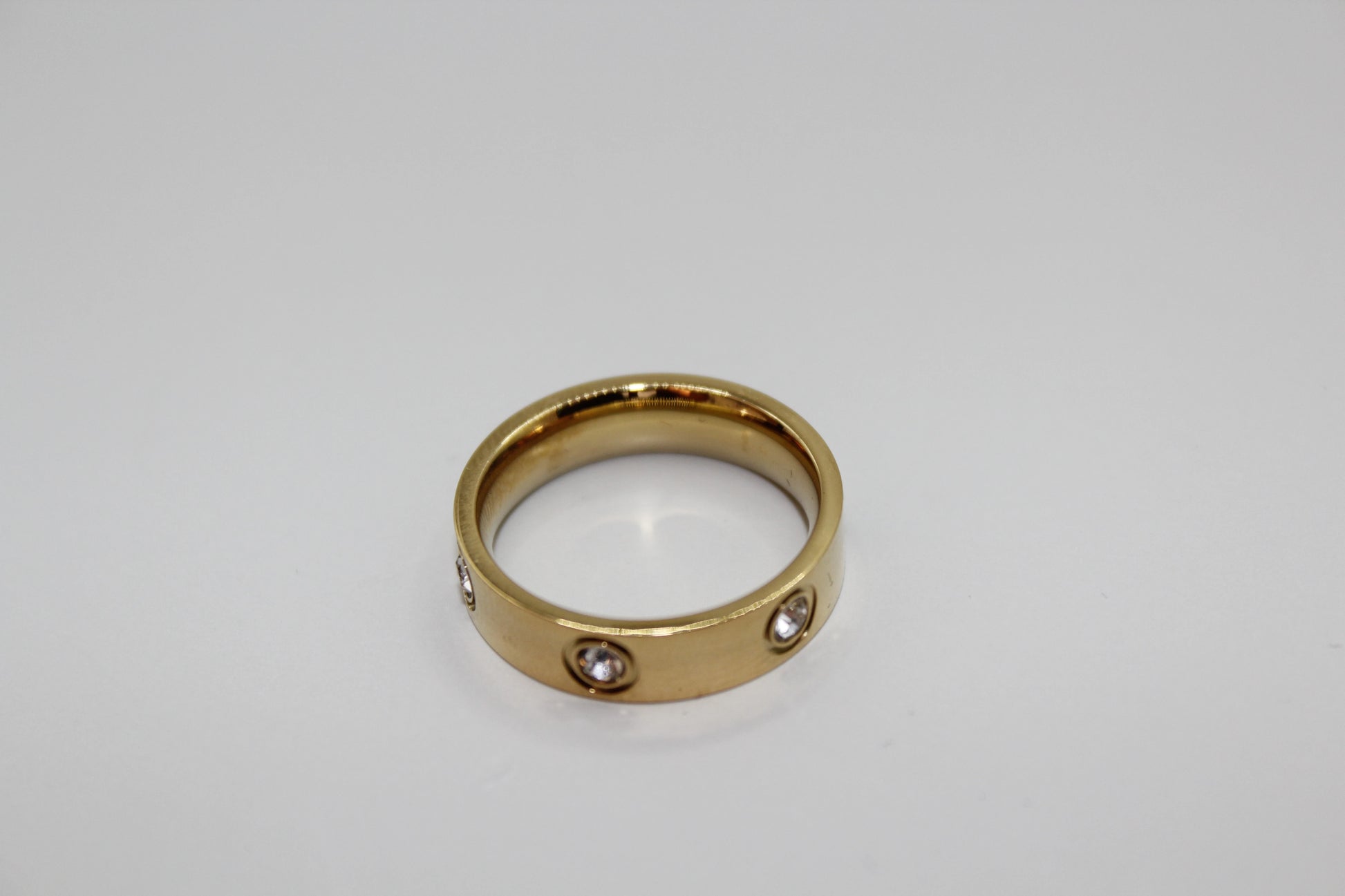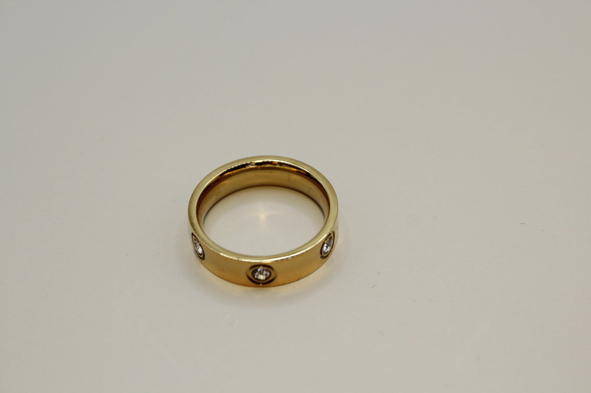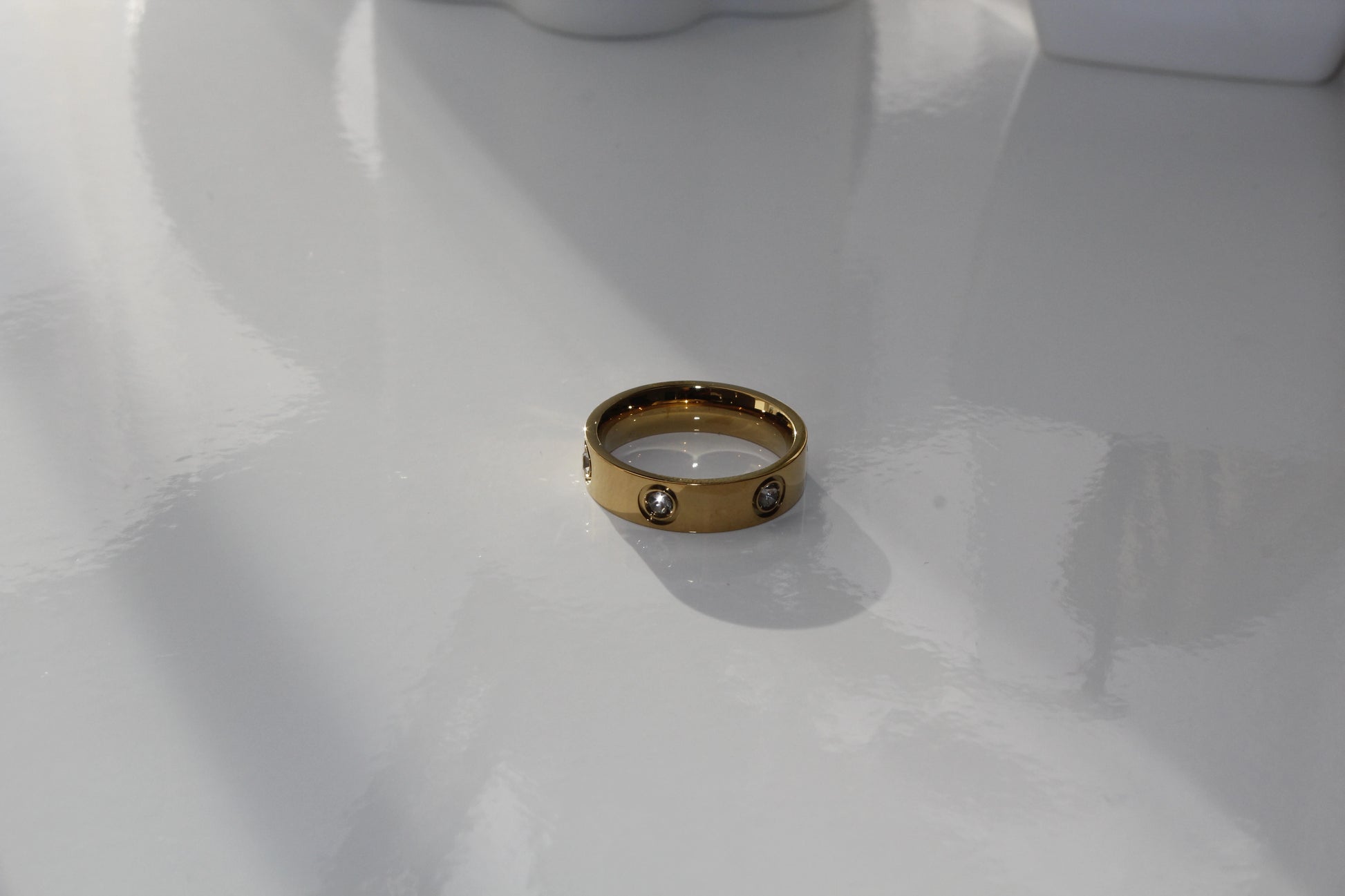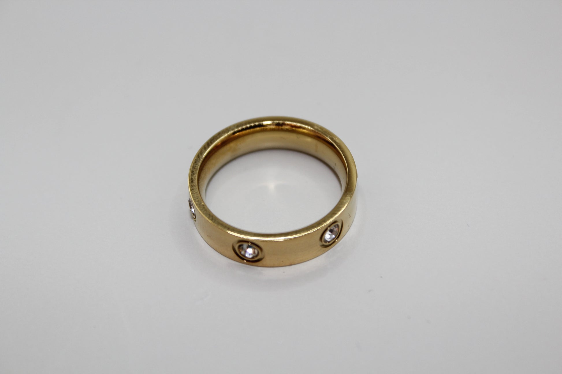 Elevate your style with our stunning Stainless Steel Gold Color Love Ring, featuring a sparkling cubic zirconia. Designed for both men and women, this elegant geometric ring is perfect for couples. Made from high-quality stainless steel with gold plating, this ring offers durability and a sophisticated shine. The 6mm surface width provides a bold yet comfortable fit, making it an ideal accessory for any occasion. The cubic zirconia adds a touch of sparkle, enhancing the overall elegance of the ring. Designed to be worn on the index finger, this ring not only provides a comfortable fit but also adds a touch of elegance to your hand gestures.