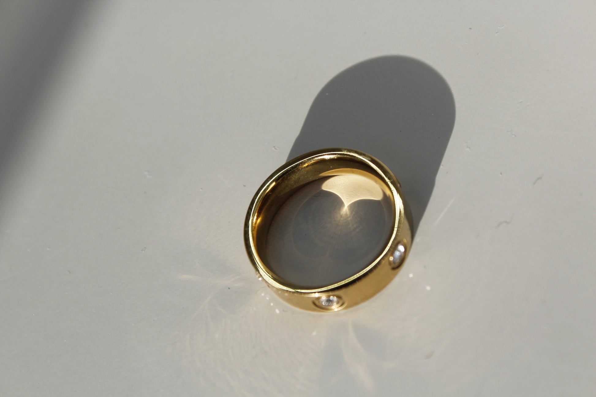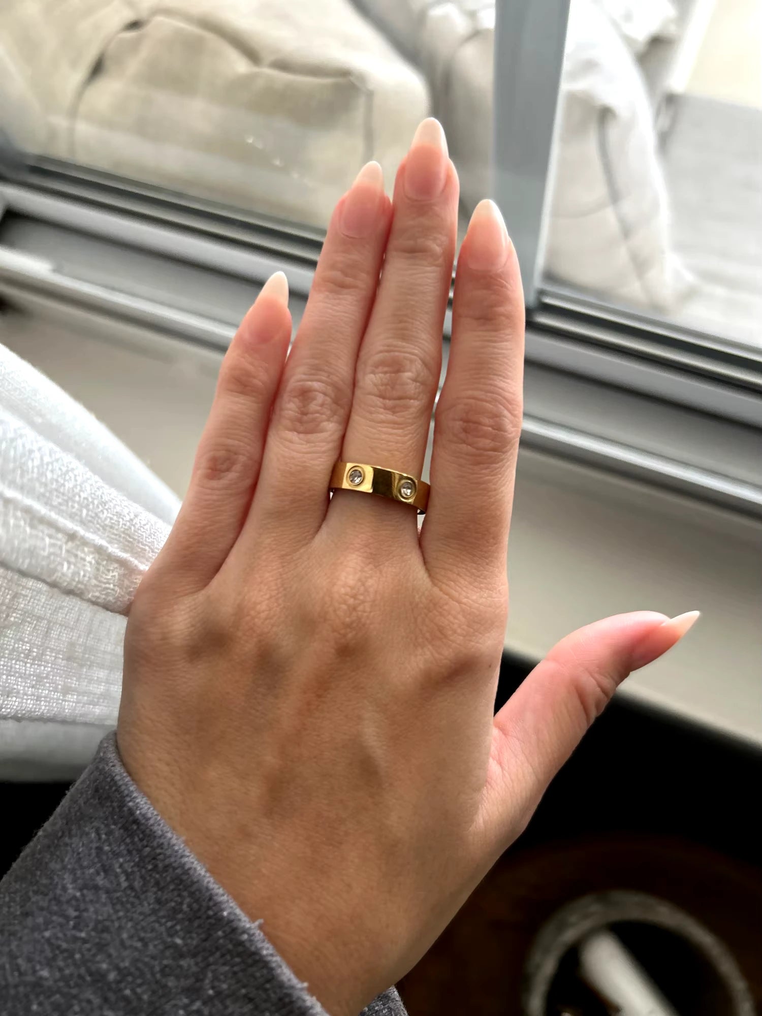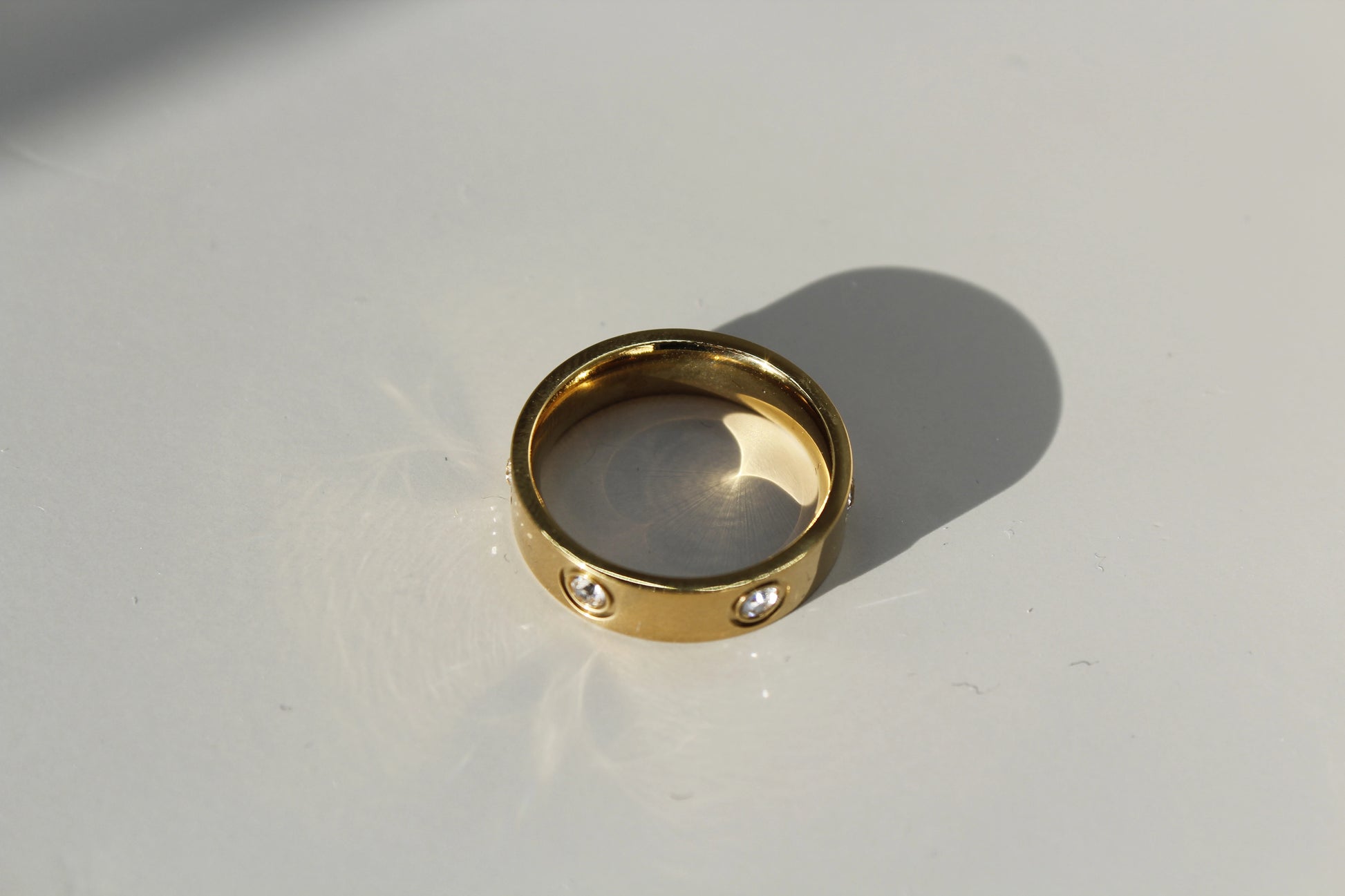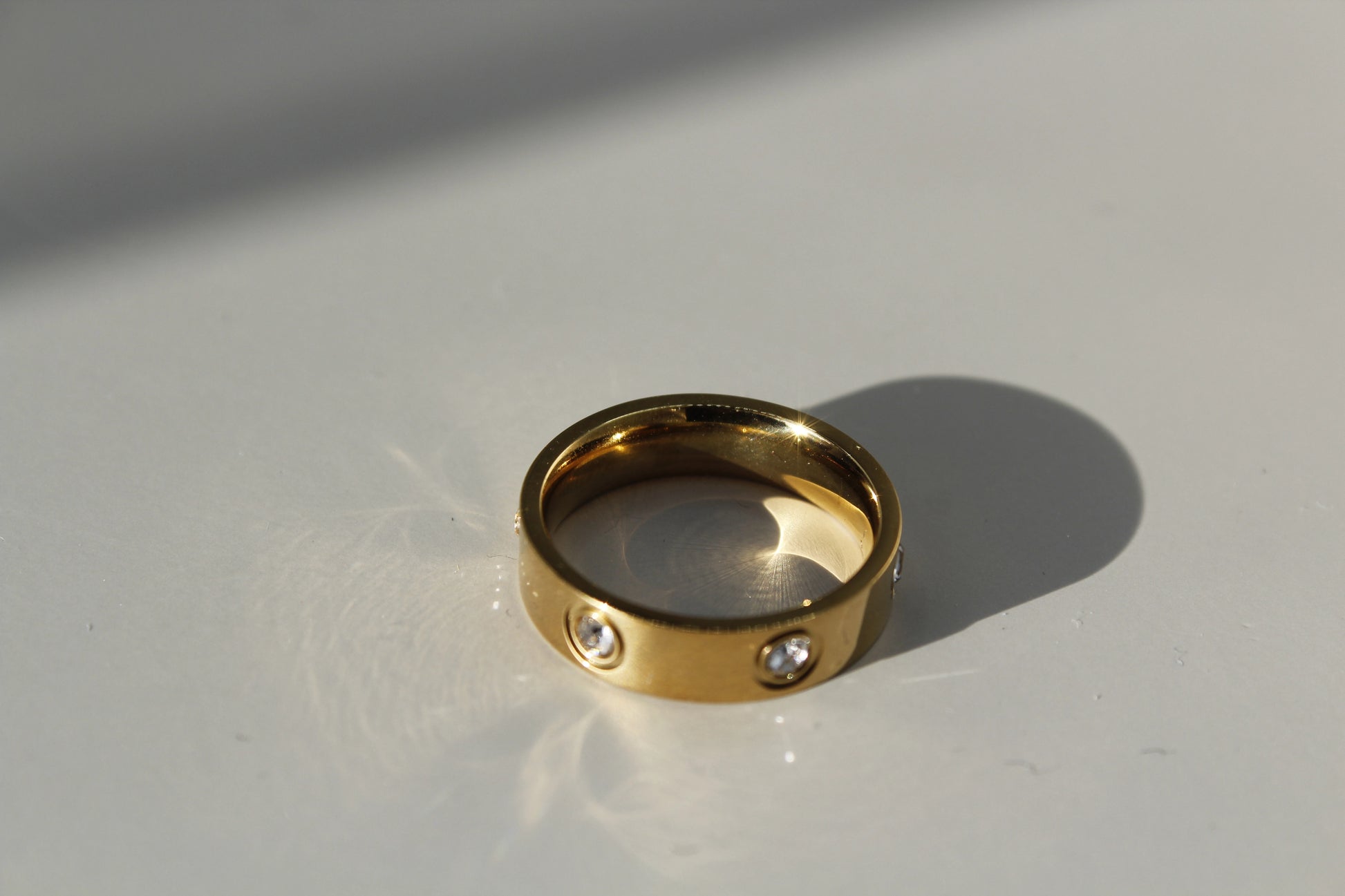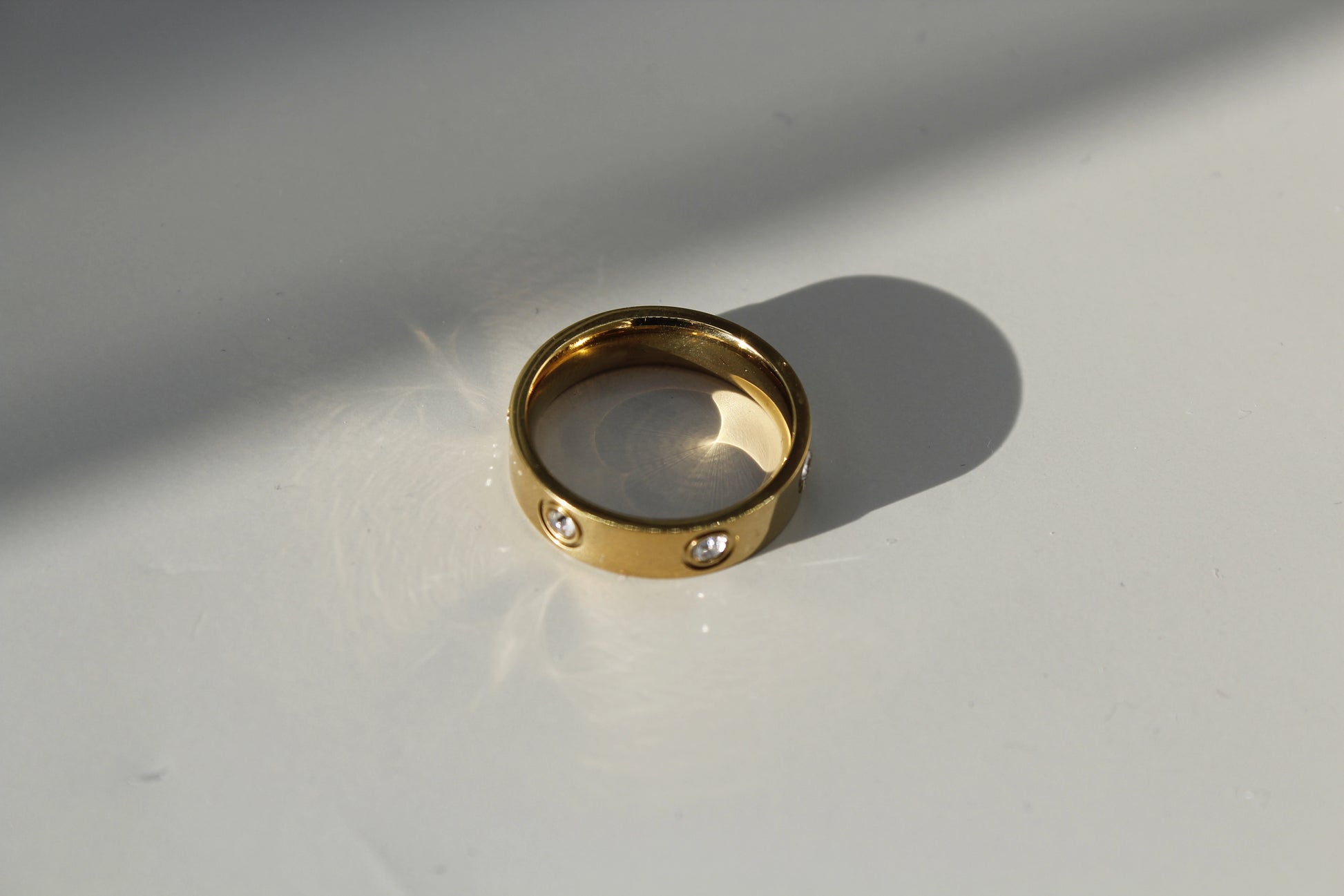 Elevate your style with our stunning Stainless Steel Gold Color Love Ring, featuring a sparkling cubic zirconia. Designed for both men and women, this elegant geometric ring is perfect for couples. Made from high-quality stainless steel with gold plating, this ring offers durability and a sophisticated shine. The 6mm surface width provides a bold yet comfortable fit, making it an ideal accessory for any occasion. The cubic zirconia adds a touch of sparkle, enhancing the overall elegance of the ring. Designed to be worn on the index finger, this ring not only provides a comfortable fit but also adds a touch of elegance to your hand gestures.