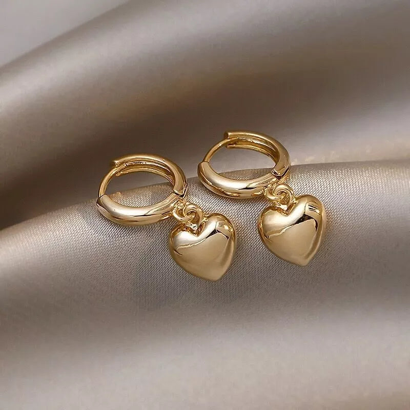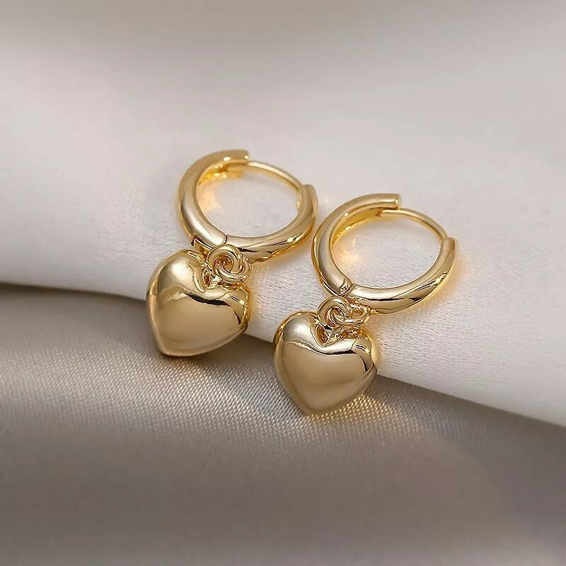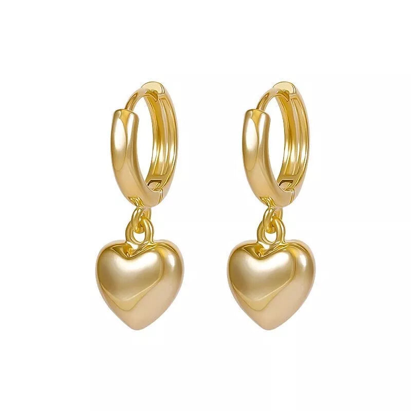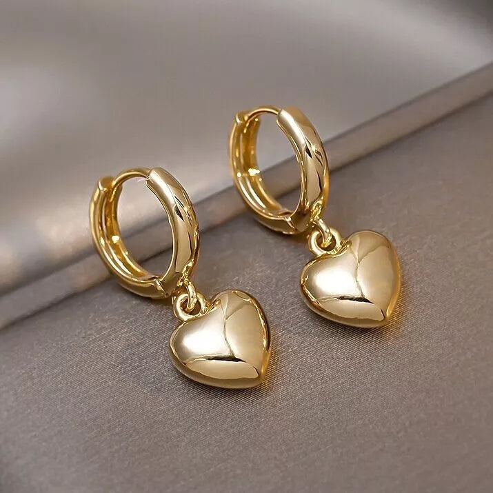 Gold Heart Charm Drop Hoop Earrings – Dangle Style for Women & Girls UK Jewellery Gift 2.2cm