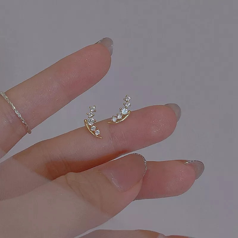Gold Plated Sterling Silver CZ Curve Bar Stud Earrings – Elegant Women’s Jewellery Gift