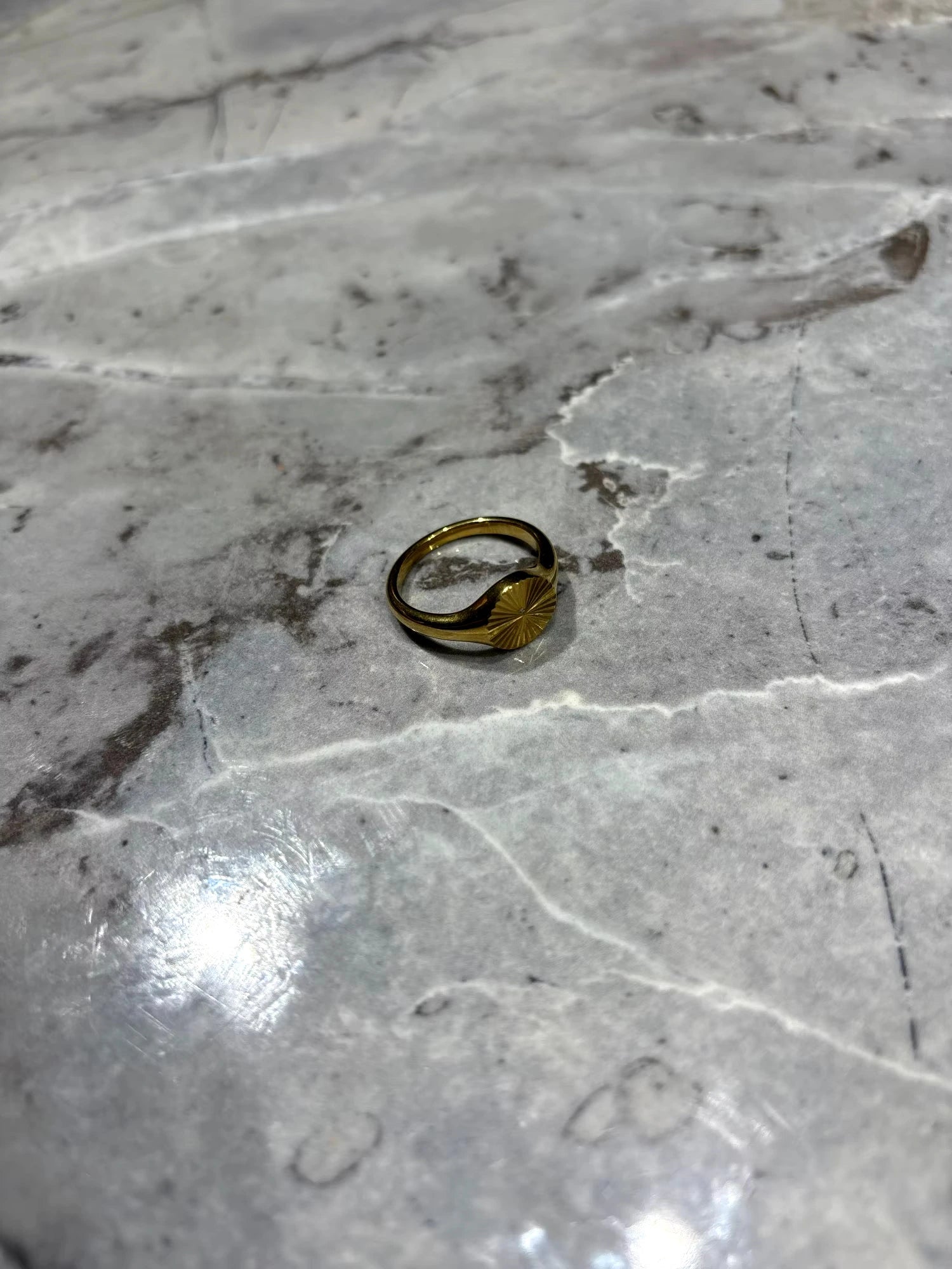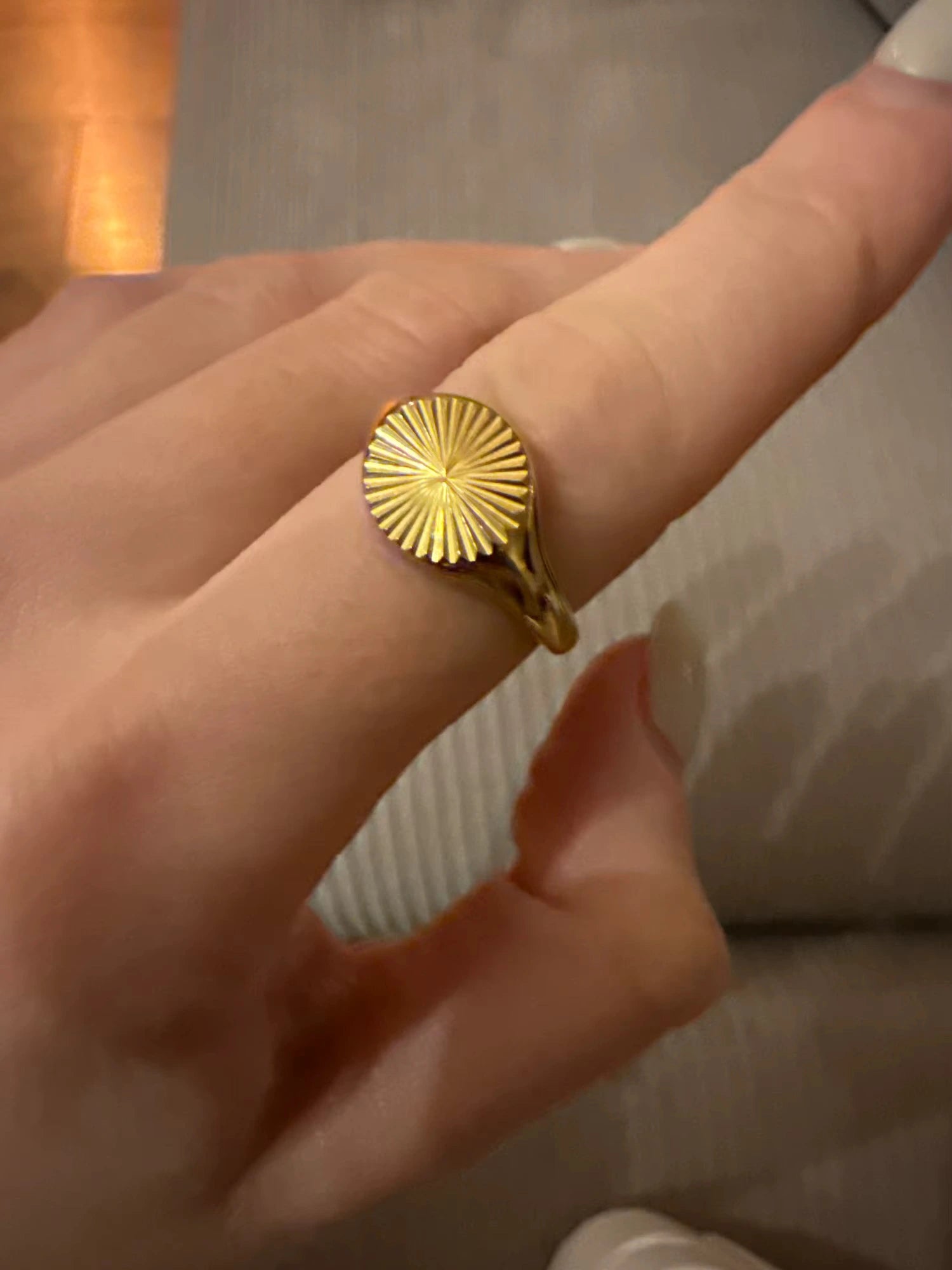 Gold Sun Geometric Wave Pattern Women's Ring, 9mm Wide, Size 6