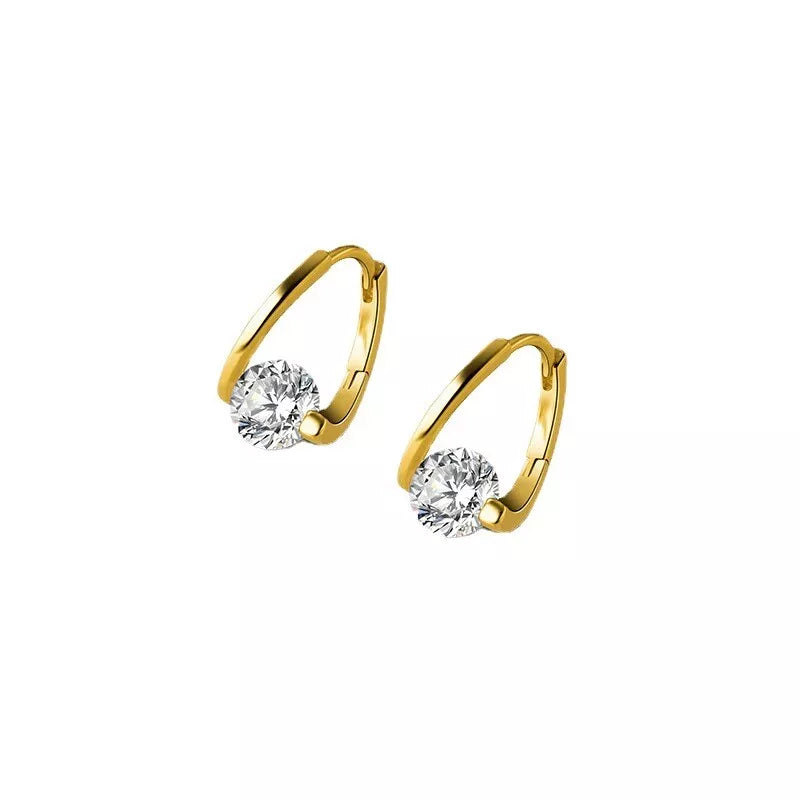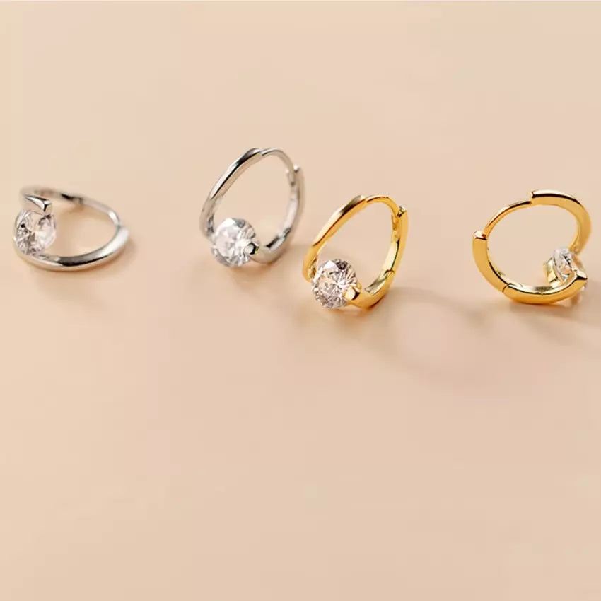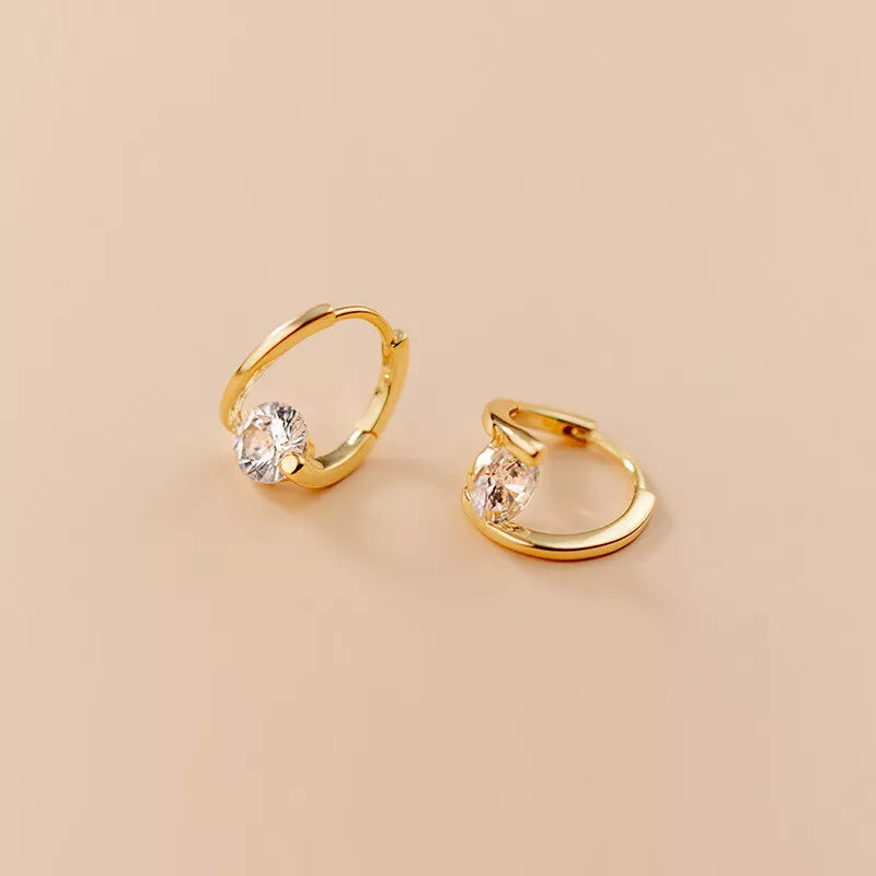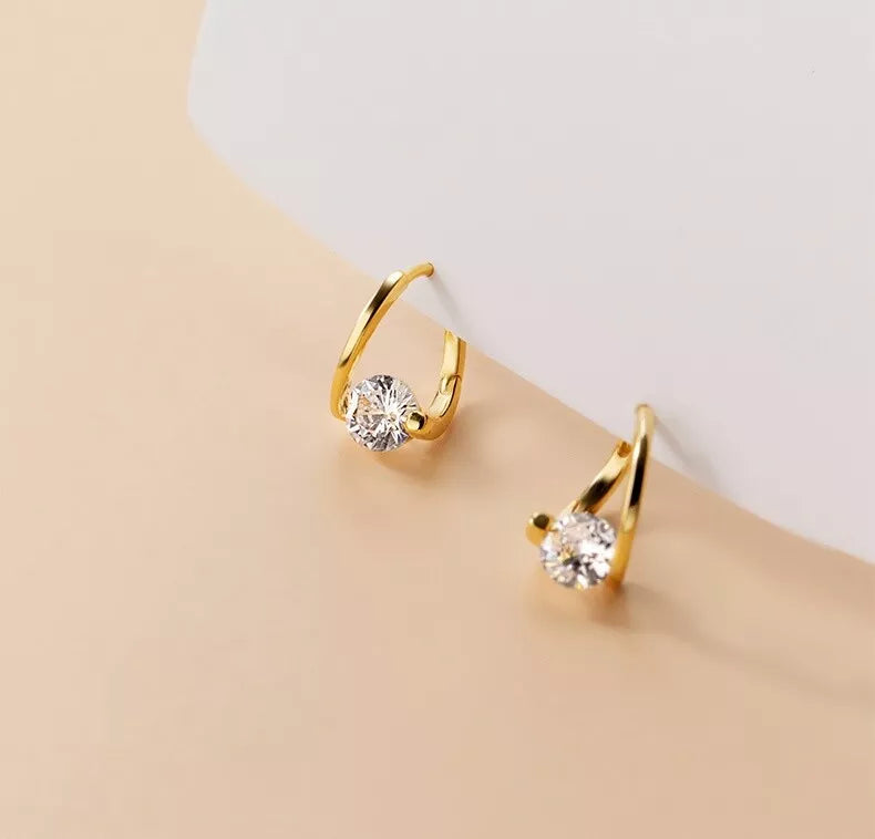 Add a touch of elegance to any outfit with these stunning 925 sterling silver gold twist CZ circle hoop huggie earrings. Perfect for women and girls, these earrings feature a classic hoop design with a modern twist, showcasing a beautiful cubic zirconia stone.
