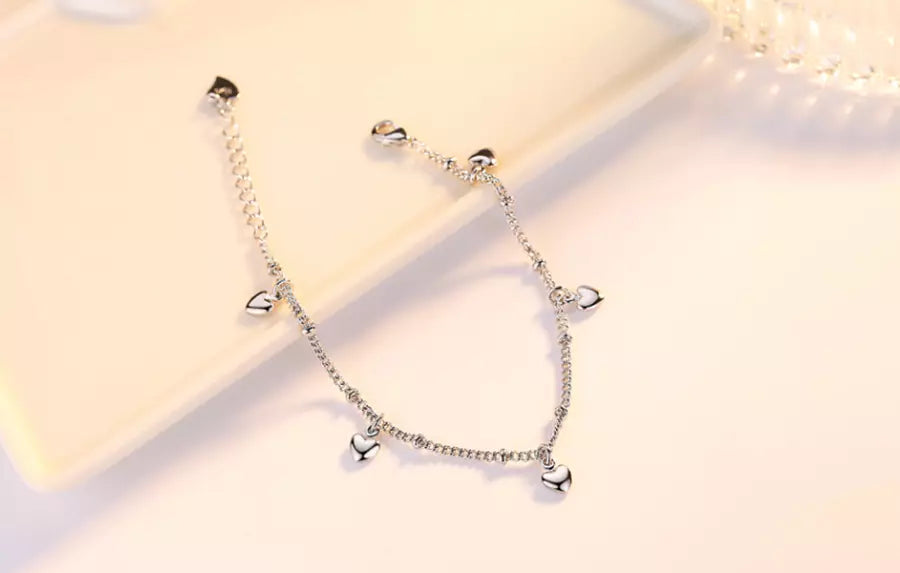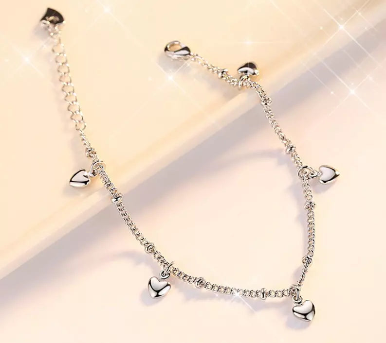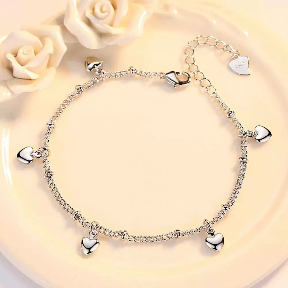 Heart Drop Linked Charm Bracelet - 925 Sterling Silver Jewellery Gift for Women & Girls (17+3cm)