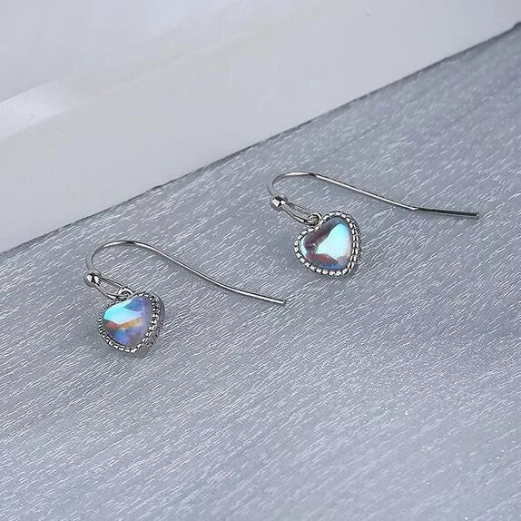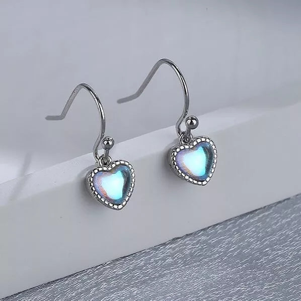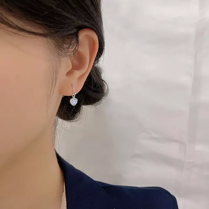 Heart Moonstone 925 Silver Hook Earrings