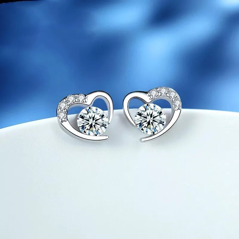 Heart Swirl Crystal Stone Stud Earrings