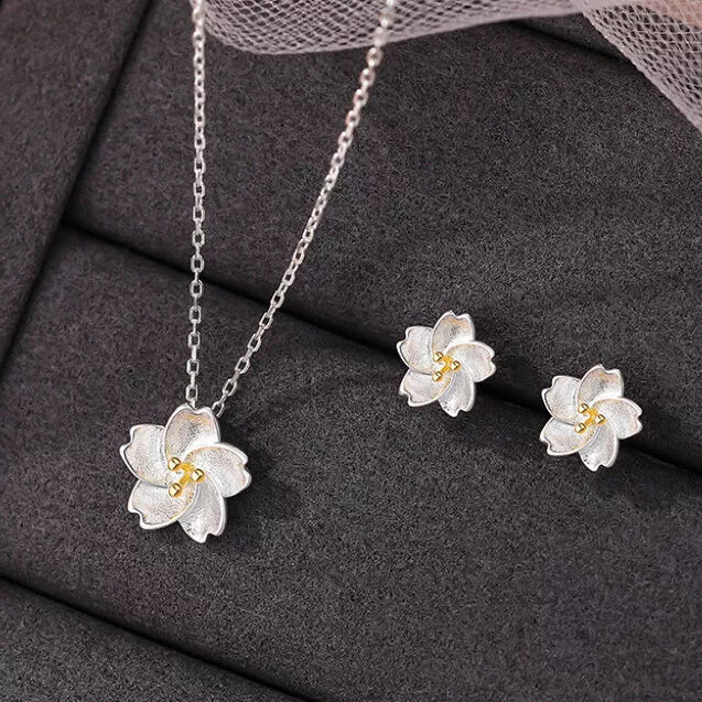 Lovely Flower Necklace and Stud Earrings Set for Women