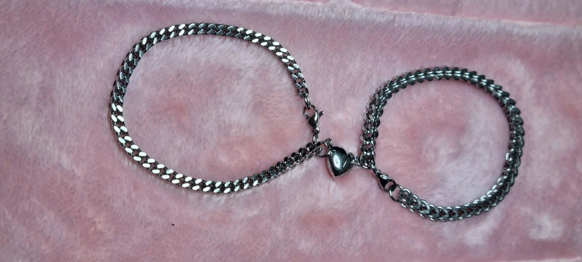Magnetic Heart Couple Bracelet Set | Stainless Steel Mutual Attraction | Valentine's Gift for Her!