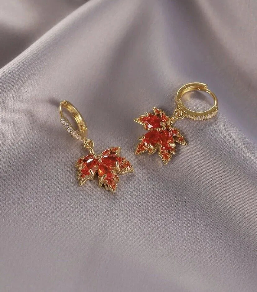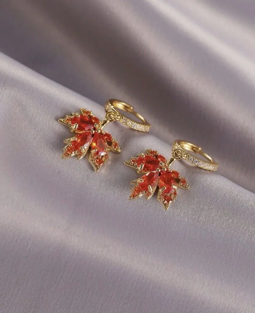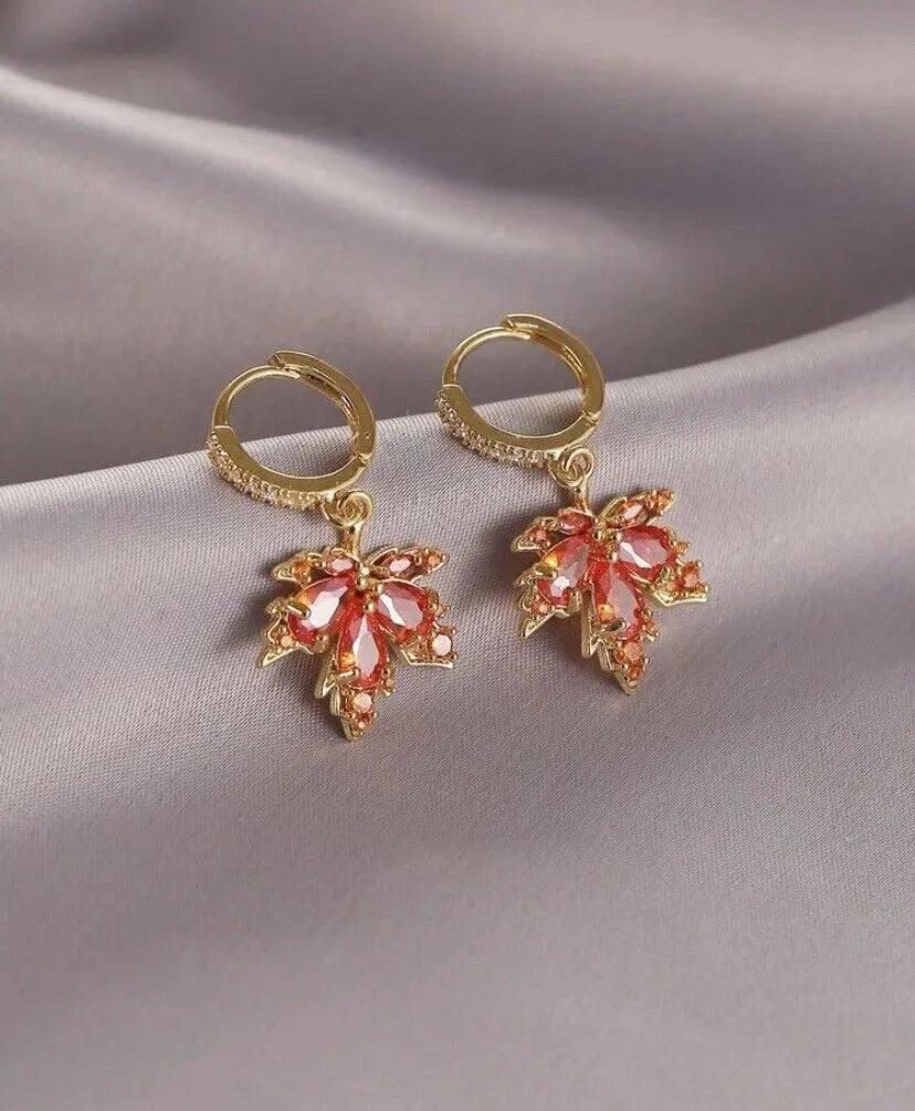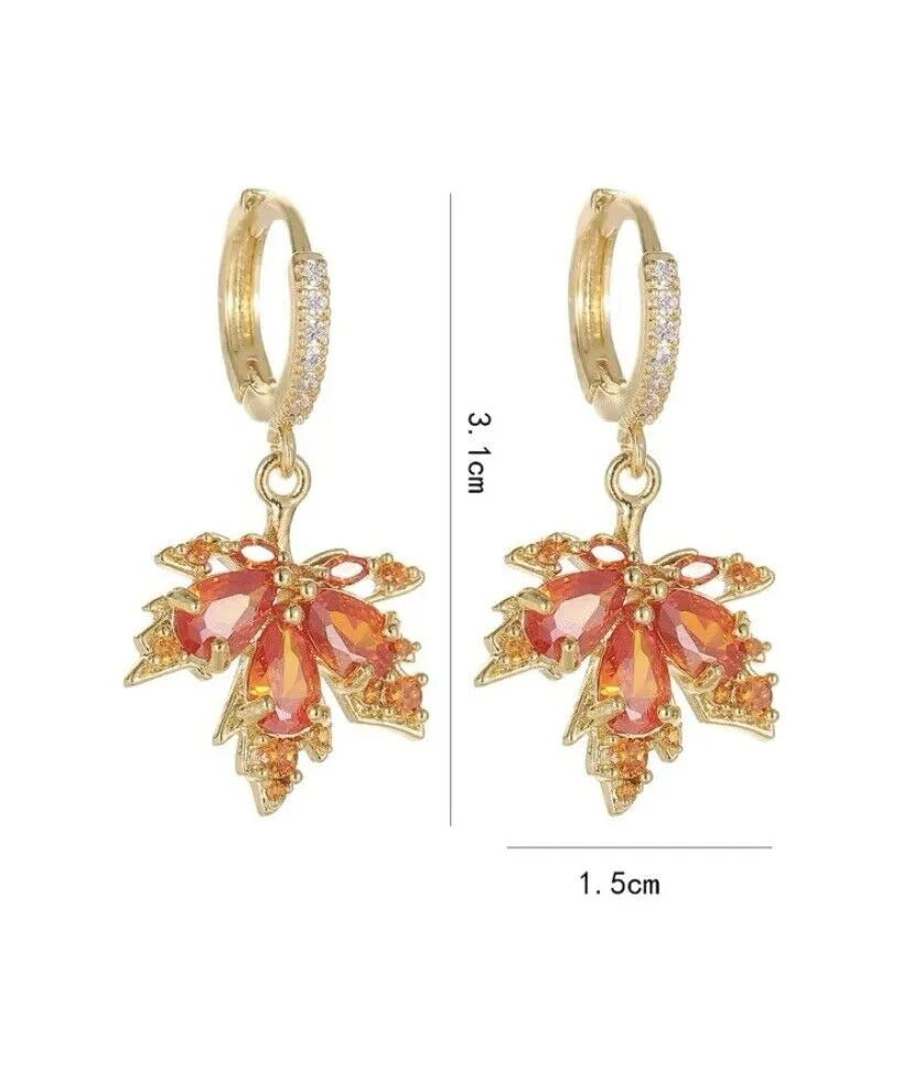 Orange Crystal Maple Leaf Dangle Hoop Earrings