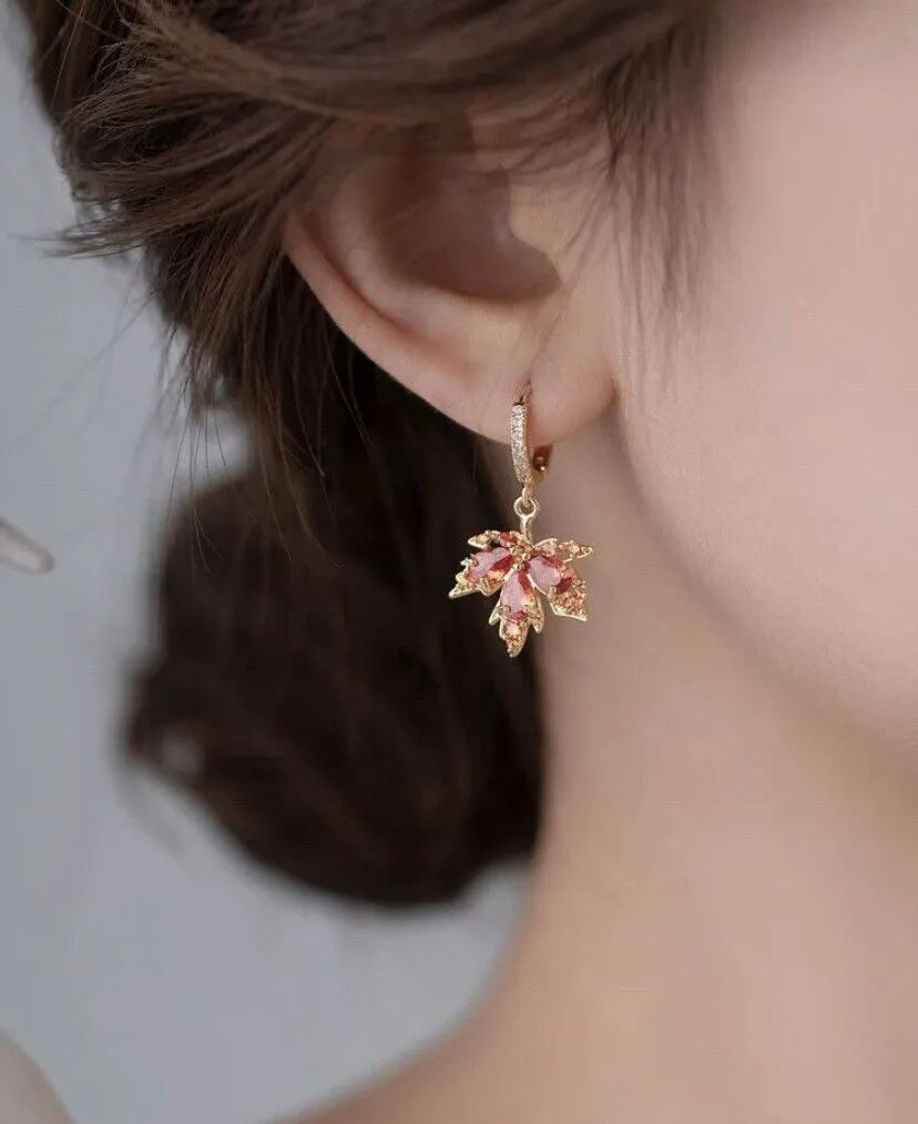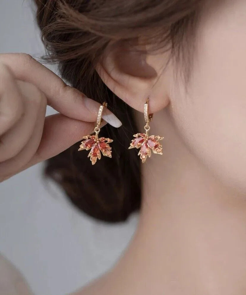 Sparkling Fall Flair: Orange Crystal Maple Leaf Earrings
