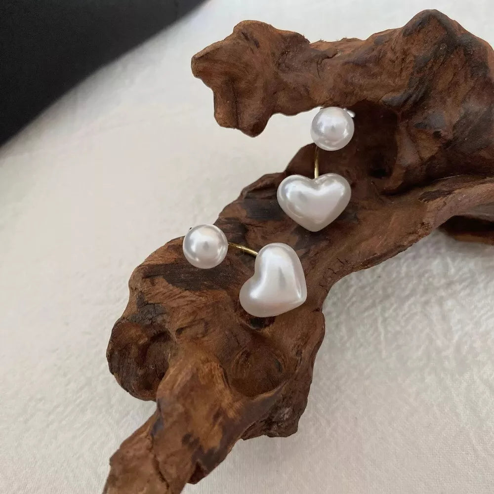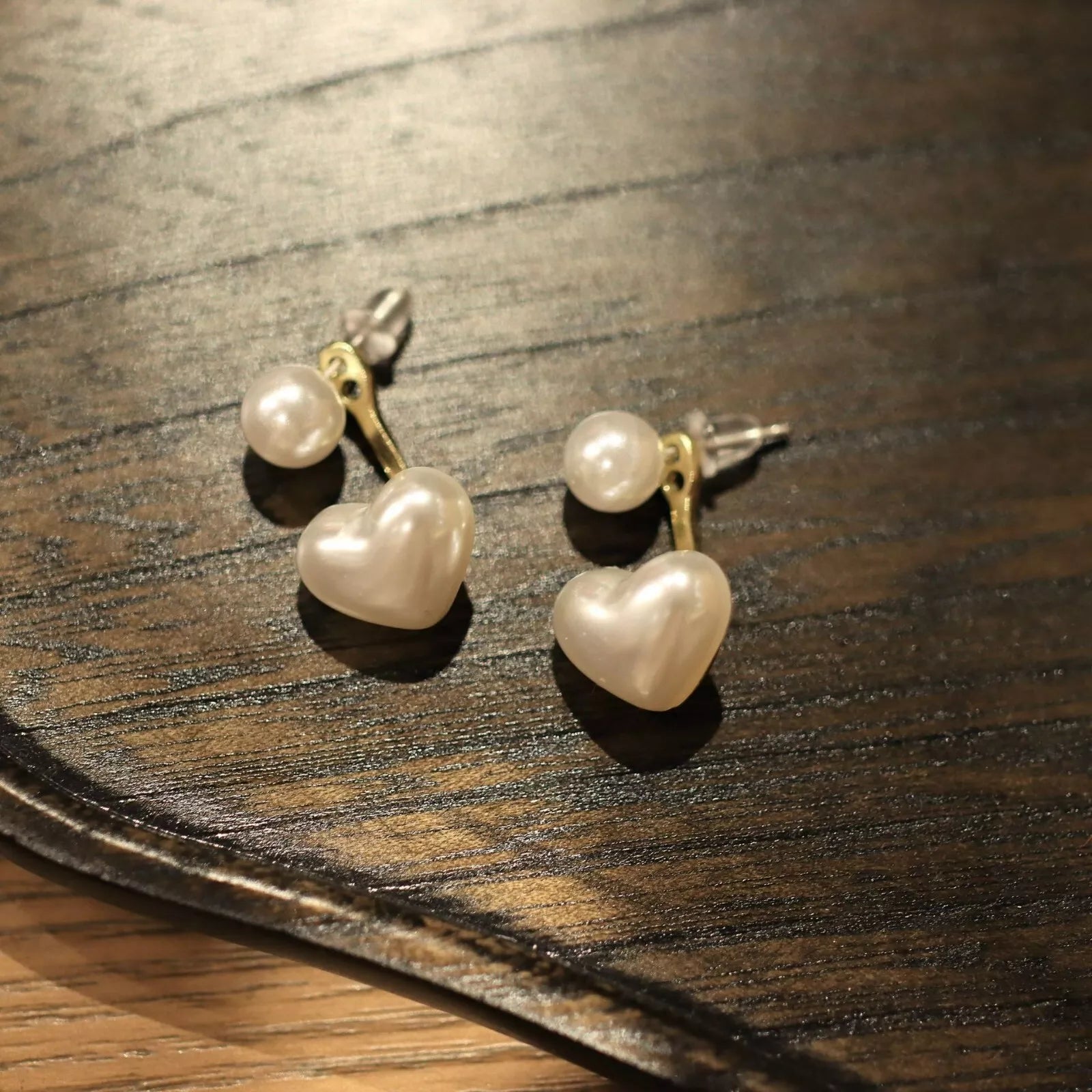 - Heart-shaped jacket earrings with lustrous pearl accents