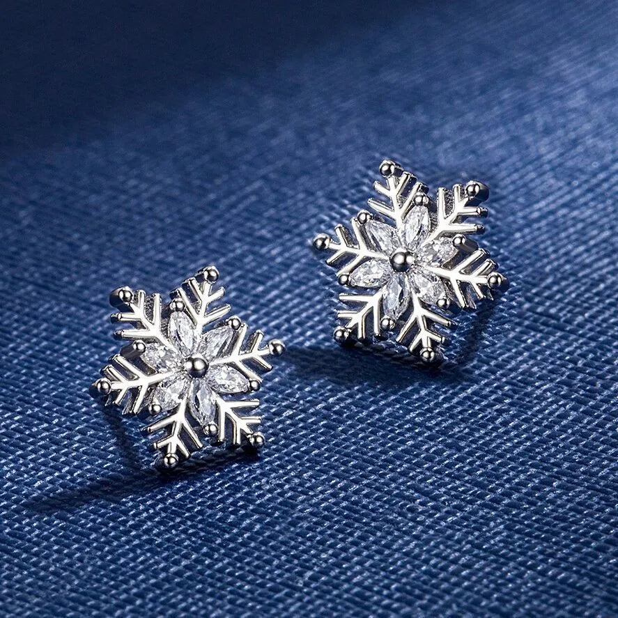 Snowflake Pendant Necklaces | Crystal Stud Earrings 925 Sterling Silver | Snowflake Jewellery Earrings