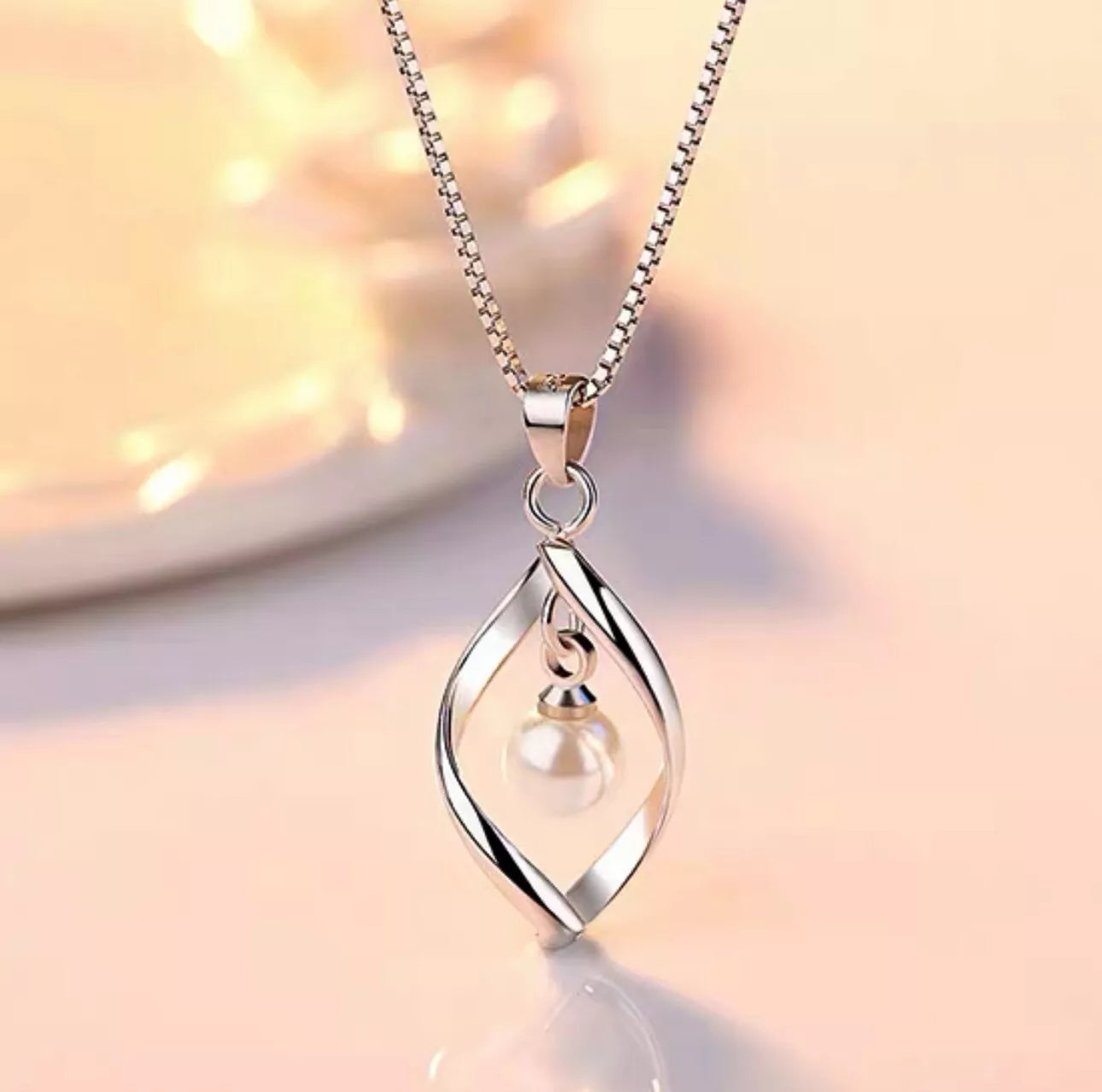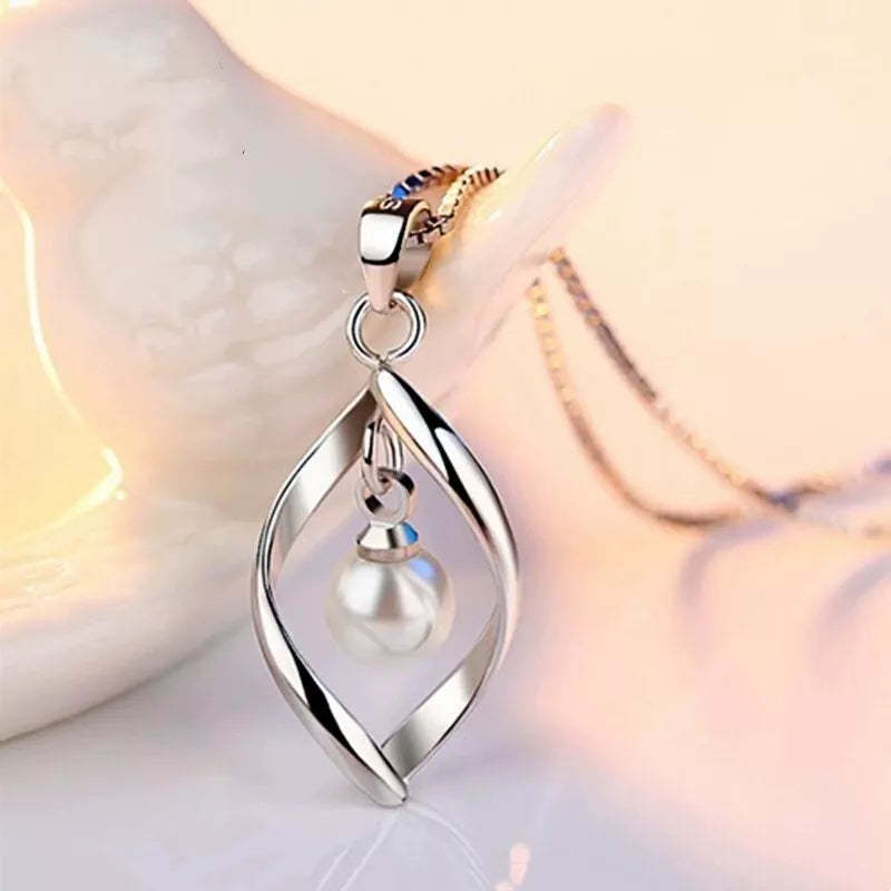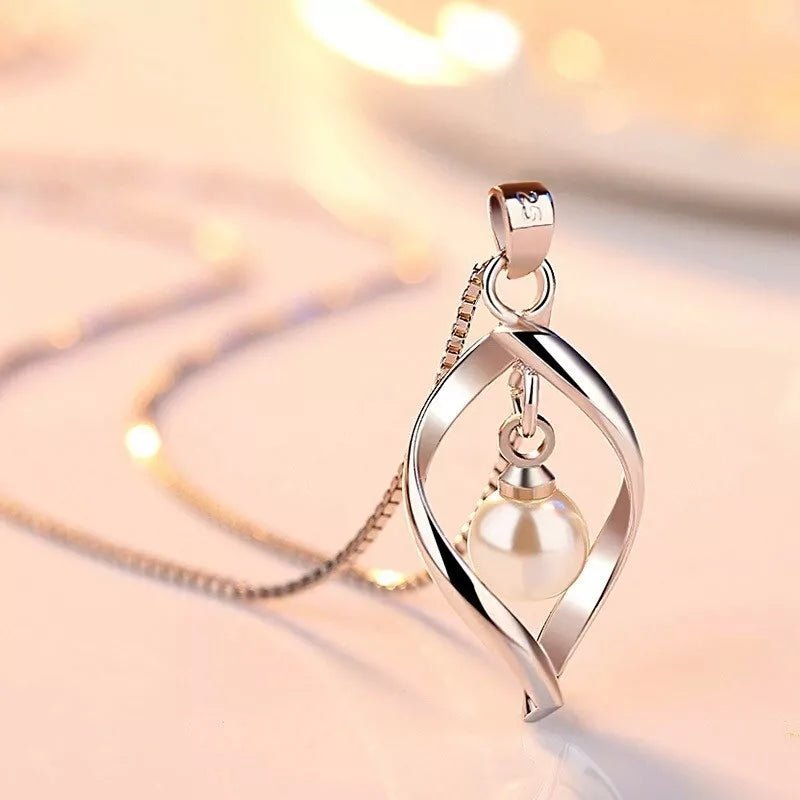 Twisted Pearl Pendant Chain Necklace
