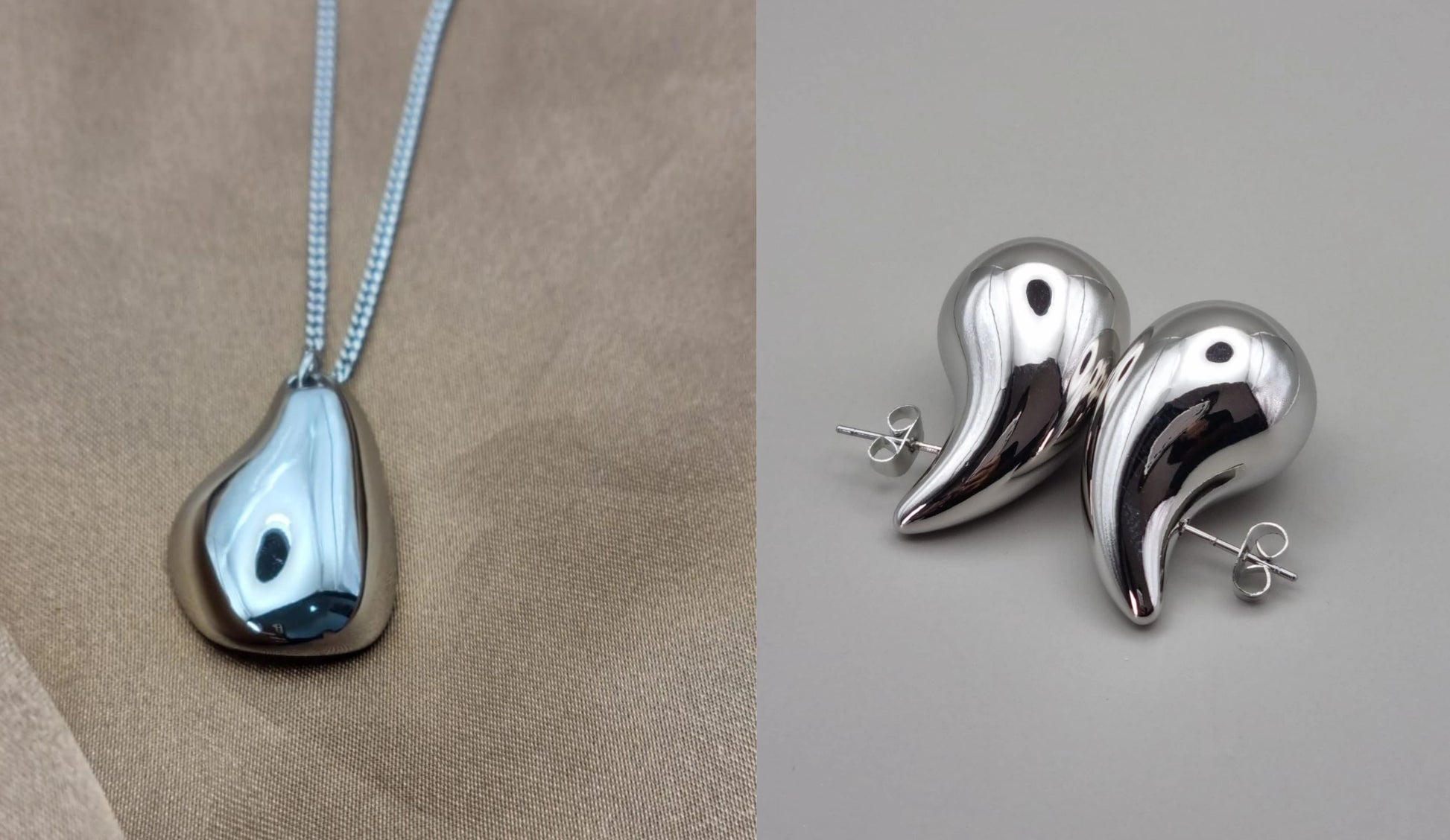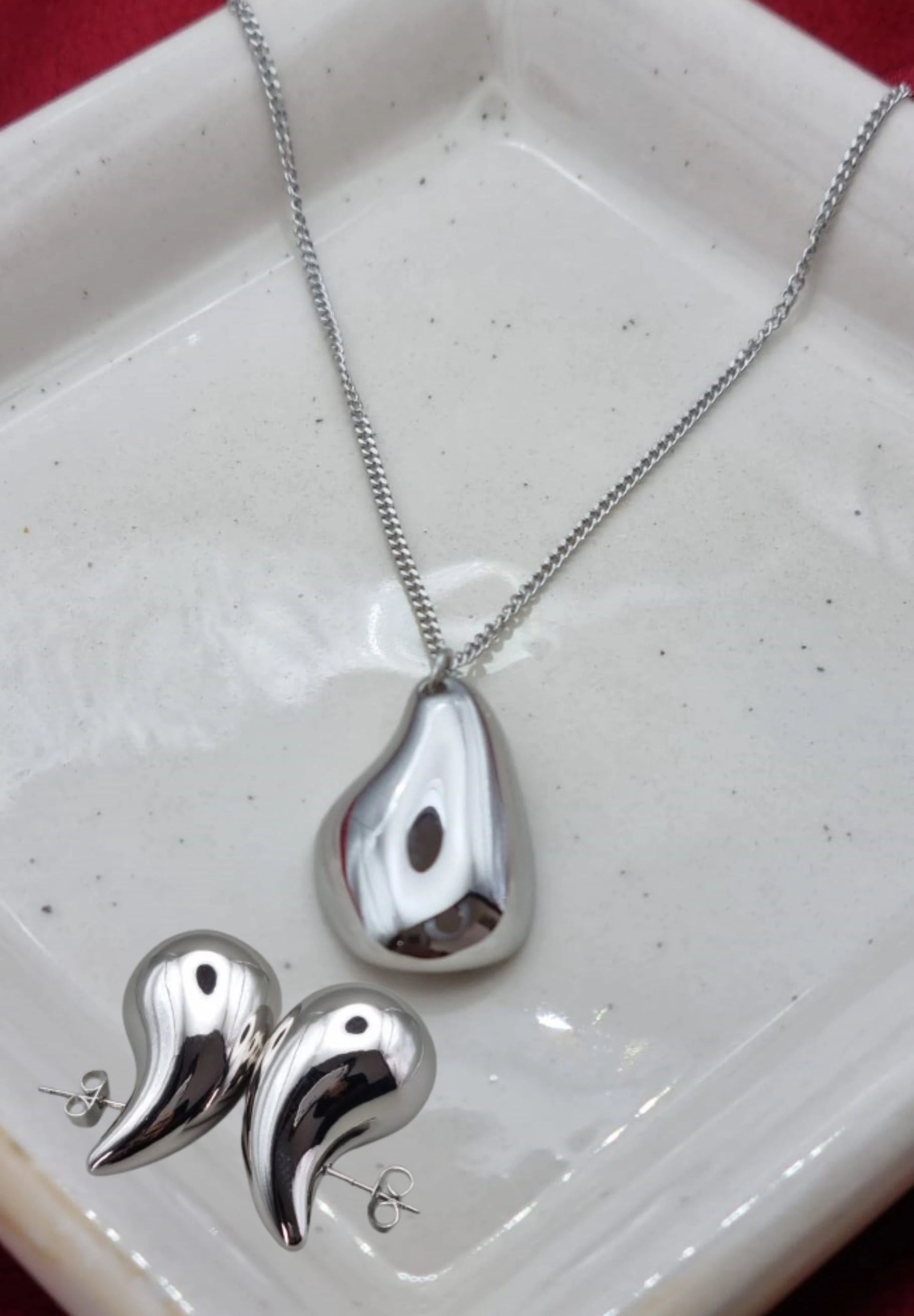 Waterdrop Silver Earring Necklace Set for Women | Teardrop Earring Necklace Set